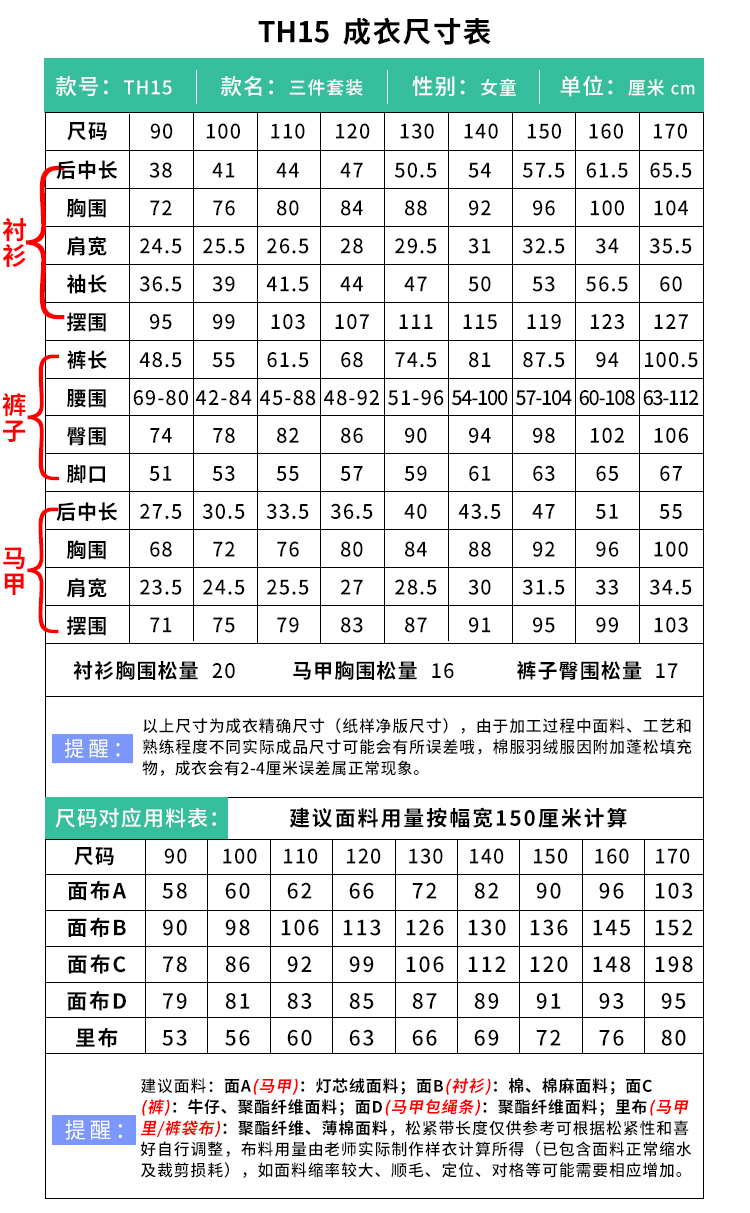 裁缝学苑TH15套装森系三件套纸样儿童灯芯绒背带裙衬衫直筒裤样板