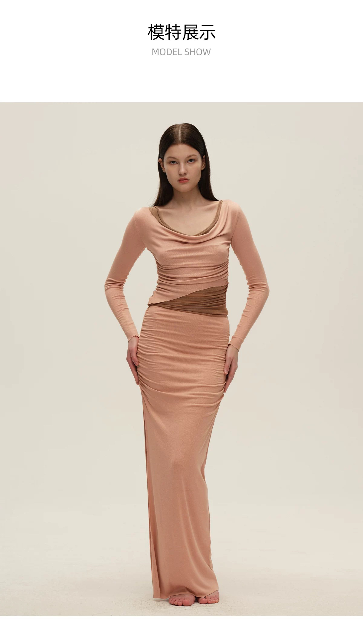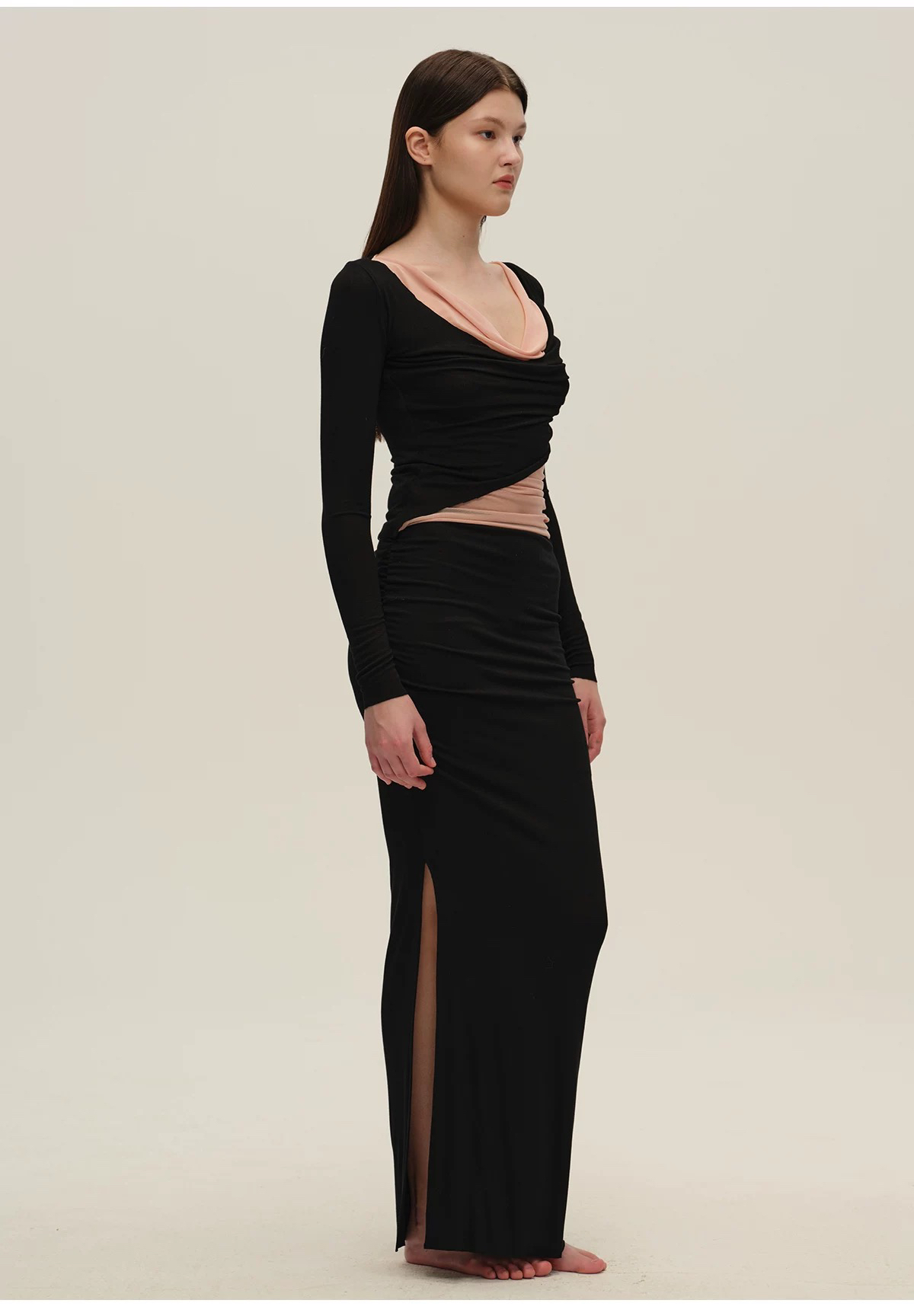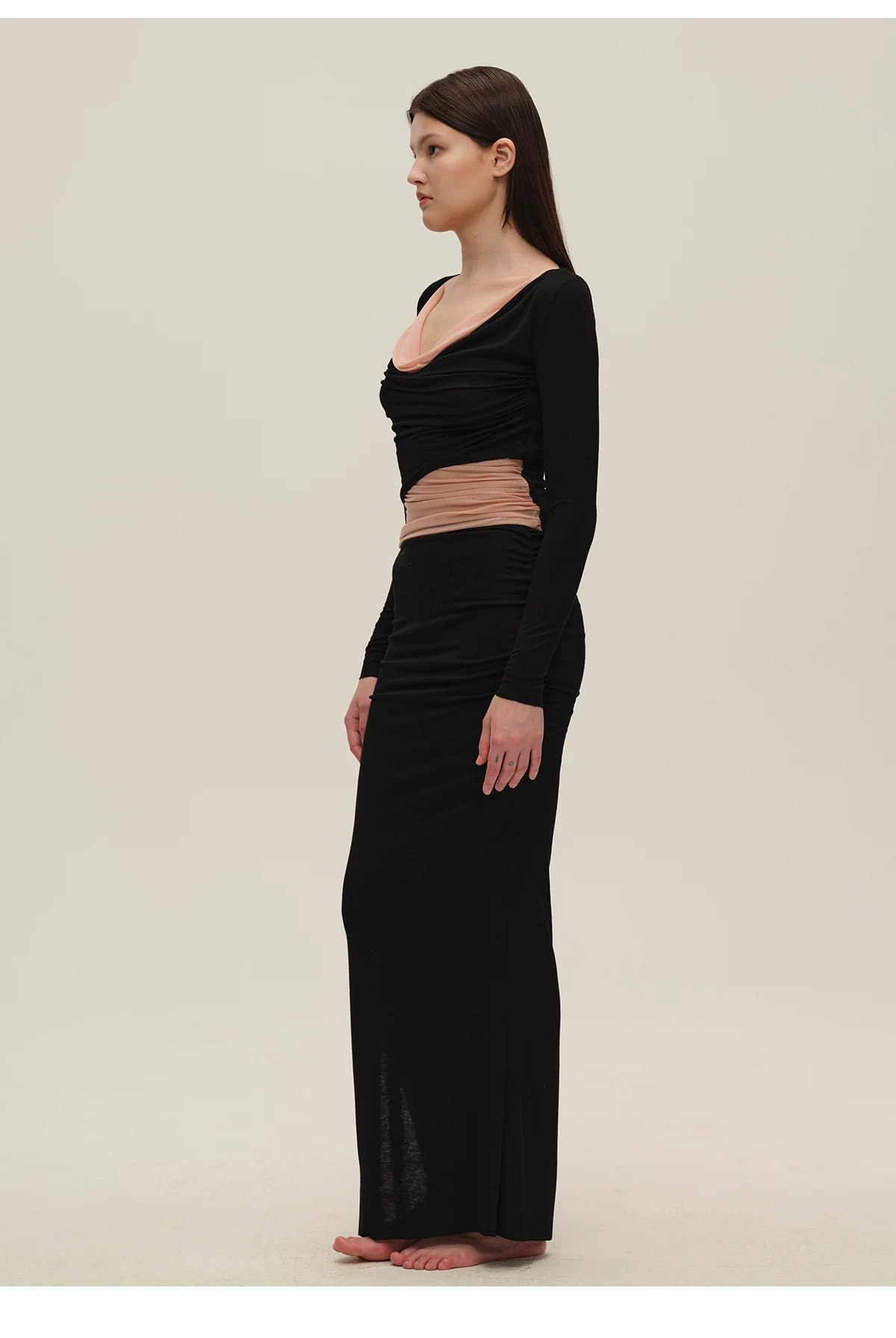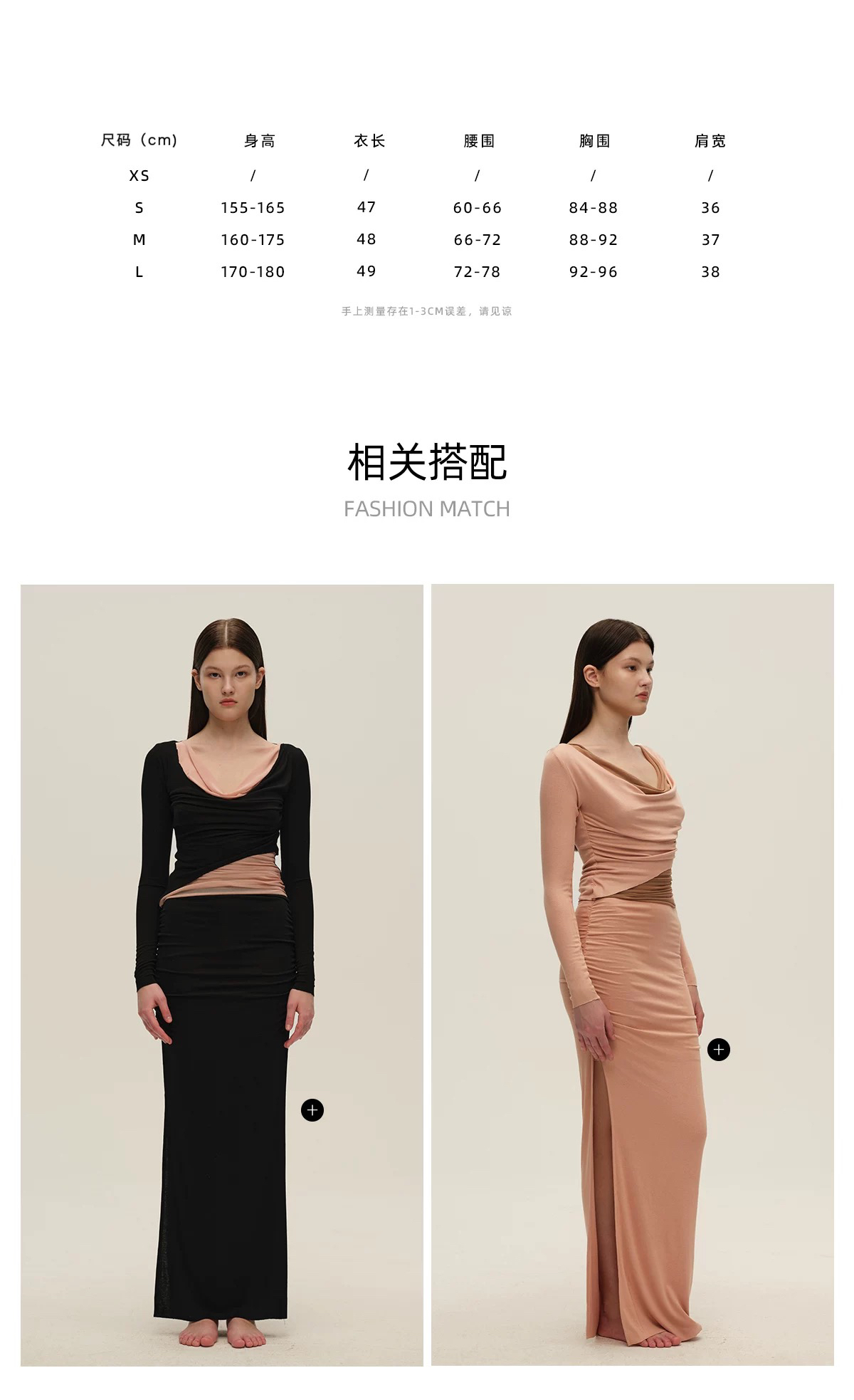 SIJIA|AW2539 黑拼色网纱荡领上衣