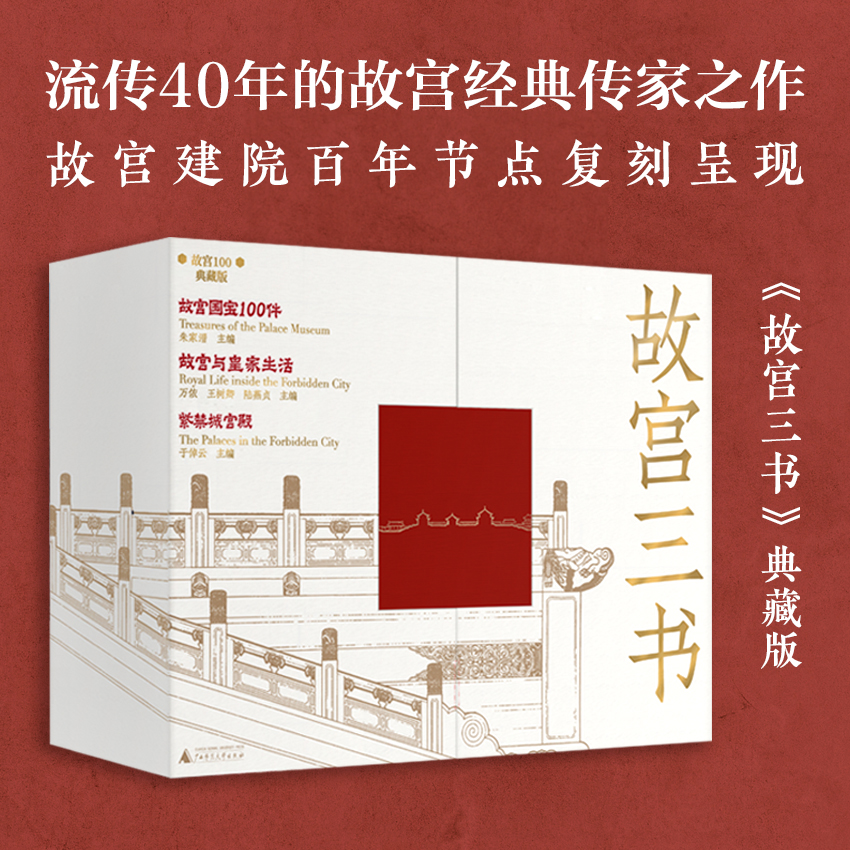 “故宫三书”是一套关于故宫建筑、馆藏国宝、皇家生活的经典读本,是1980年代集故宫各部门权威之力,用一流的解说团队和珍贵的一手资料打造的经典之作,由《紫禁城宫殿》《故宫国宝100件》《故宫与皇家生活》组成。此次百年典藏版将40年经久不衰的传家之作精装复刻重现,一函三册,犹如一部承载故宫百年守护精神的文物级藏品。书中附赠“故宫三书纪念特辑”,收录朱家溍、万依、于倬云等故宫泰斗回忆录,细述1980年代故宫学术拓荒的秘辛与热忱;初代责编陈万雄、再版主编汪家明倾情撰文,揭秘这套“国礼级经典”跨越四十年的出版传奇。