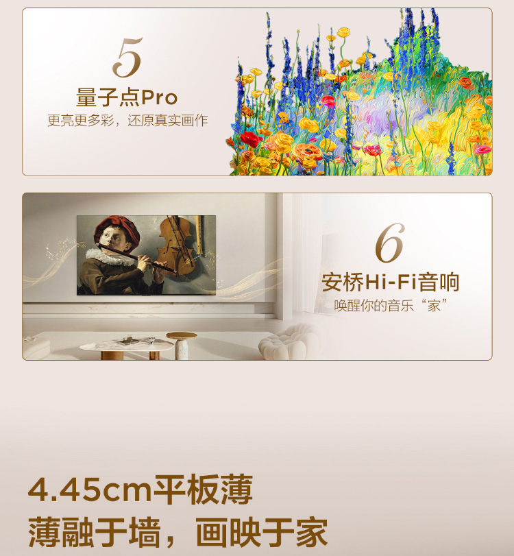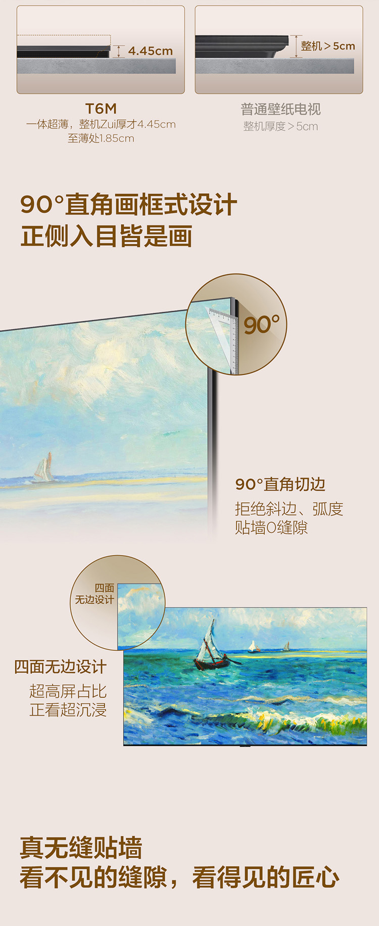 【新品上市】TCL艺术壁纸电视 98T6M 98英寸 4.45cm平板薄 轻盈家居美学 QD-Mini LED 全通道360Hz超高刷