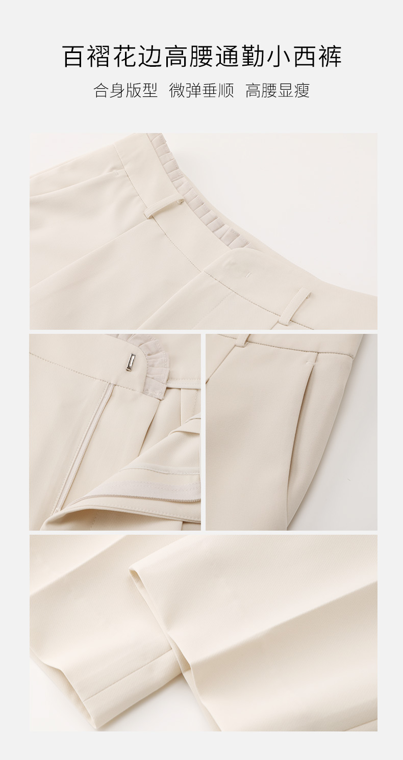 玳莎百褶花边设计感高腰西裤女2023年秋季新款小众显瘦通勤长裤 DC36302