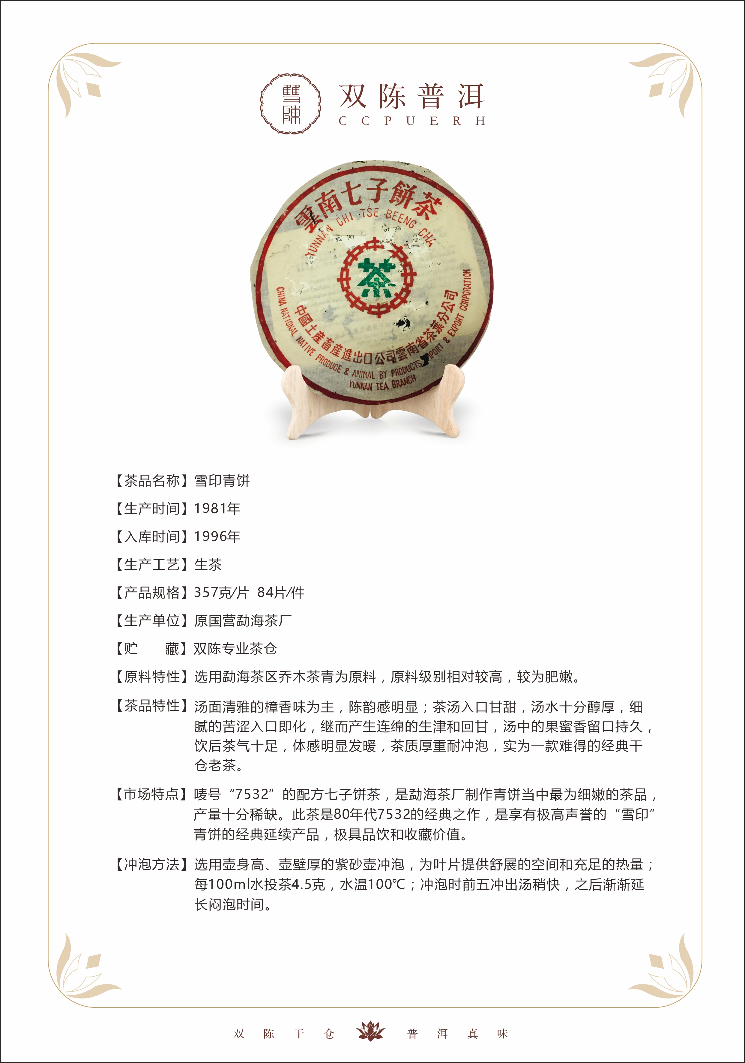 1981年中茶绿印7532青饼