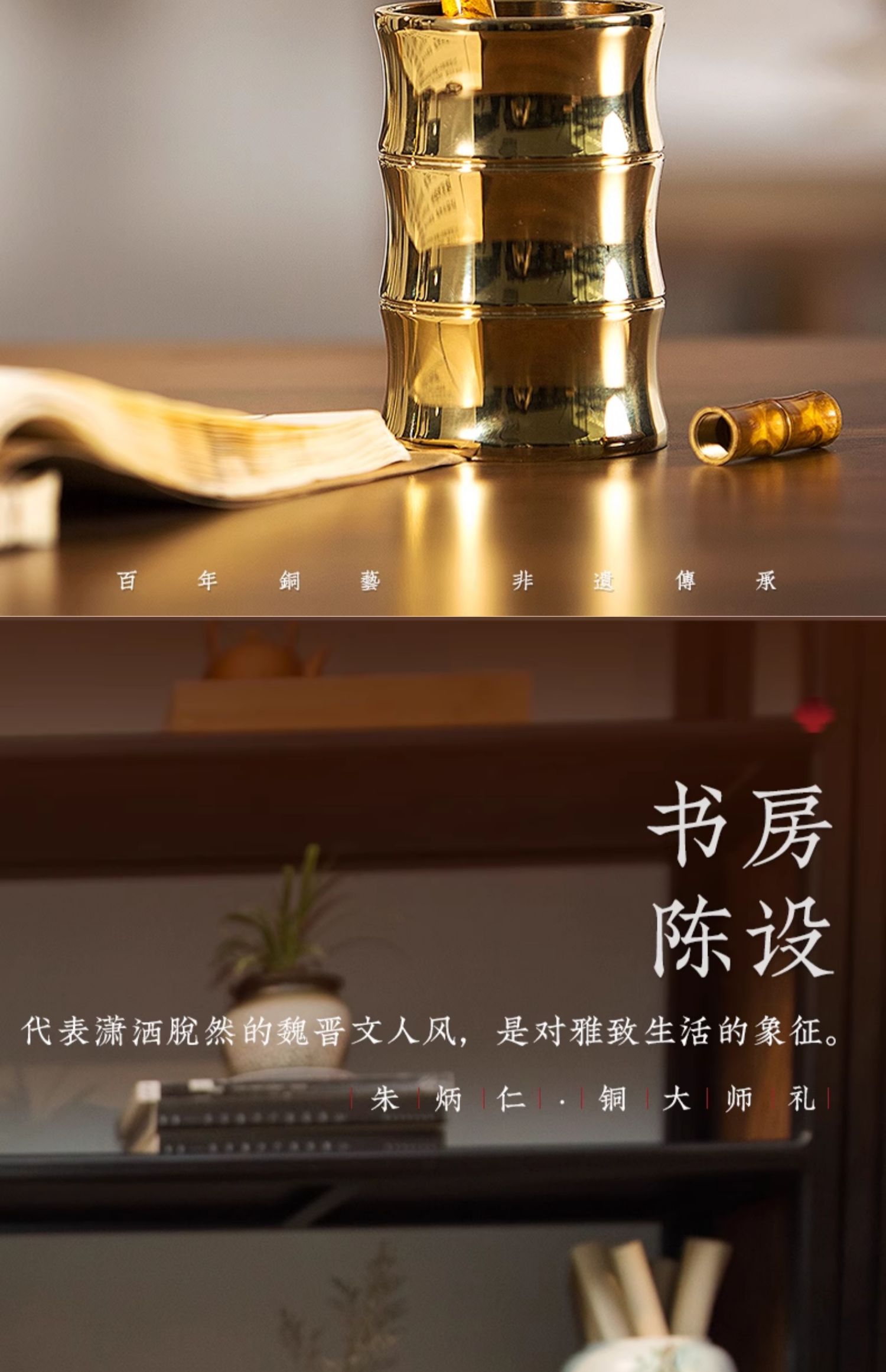 朱炳仁·铜竹节笔书房文具收藏送人创意步步登高