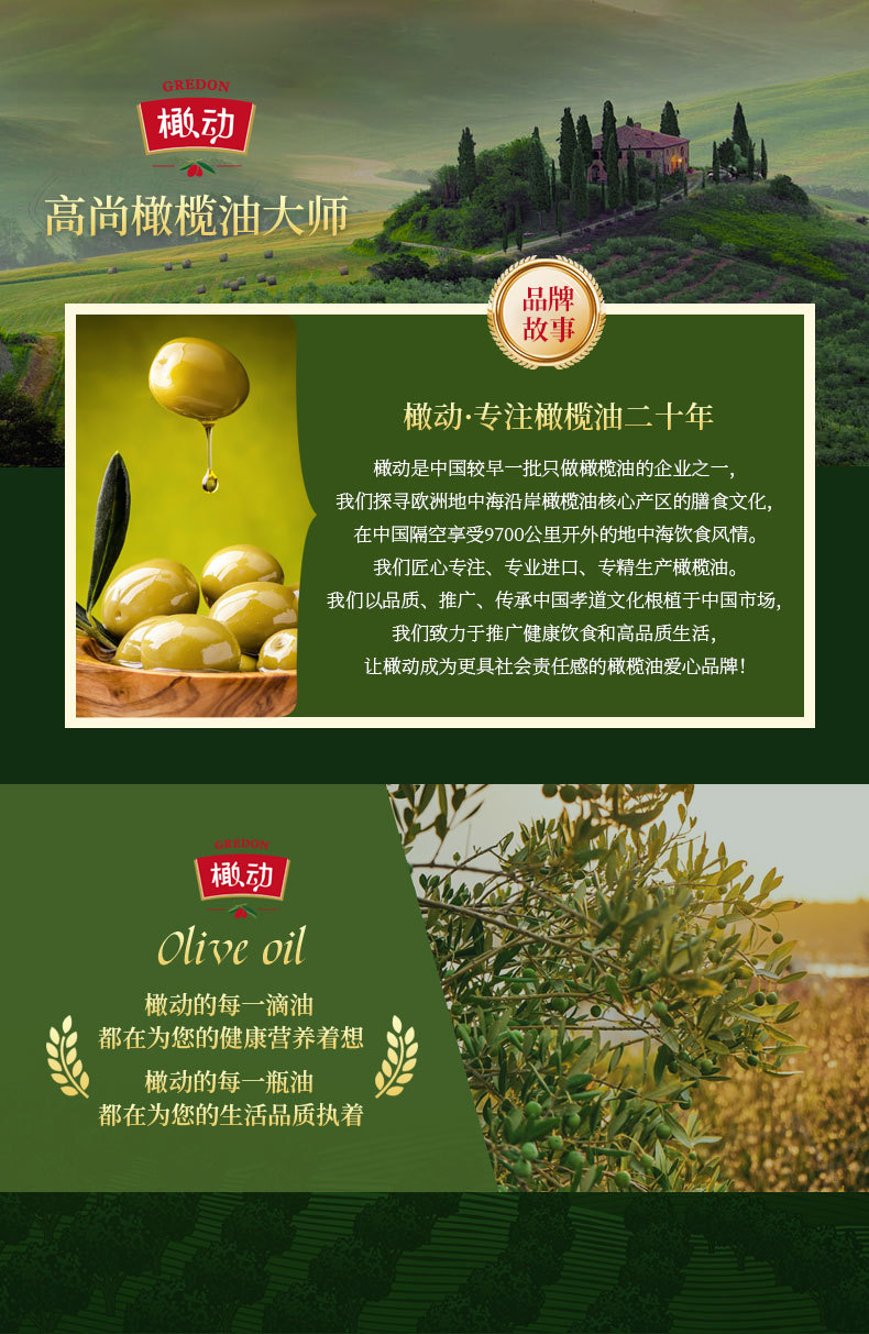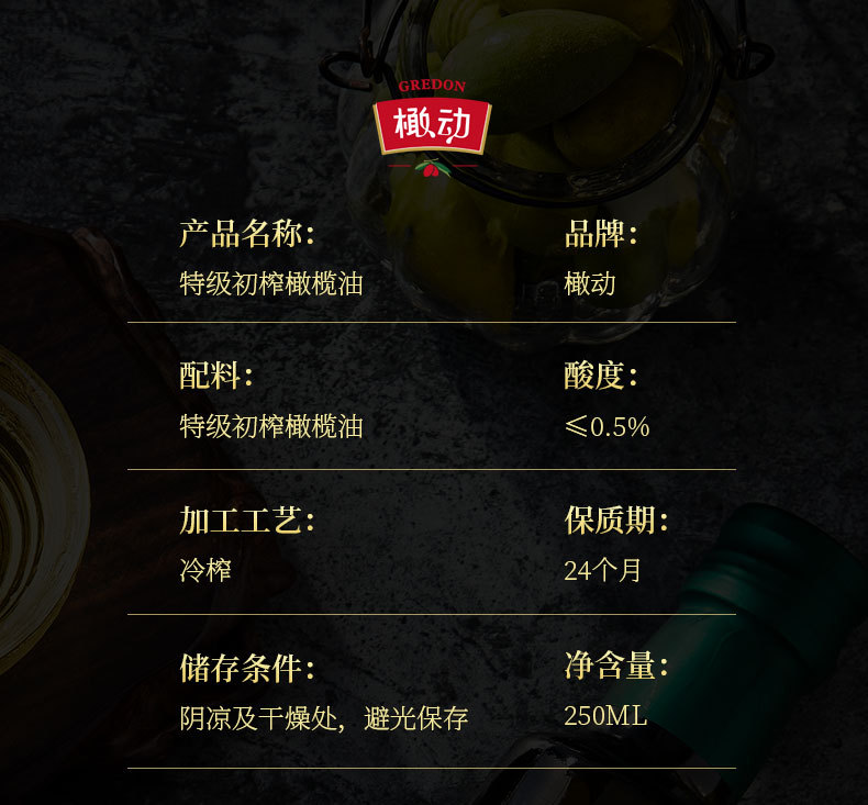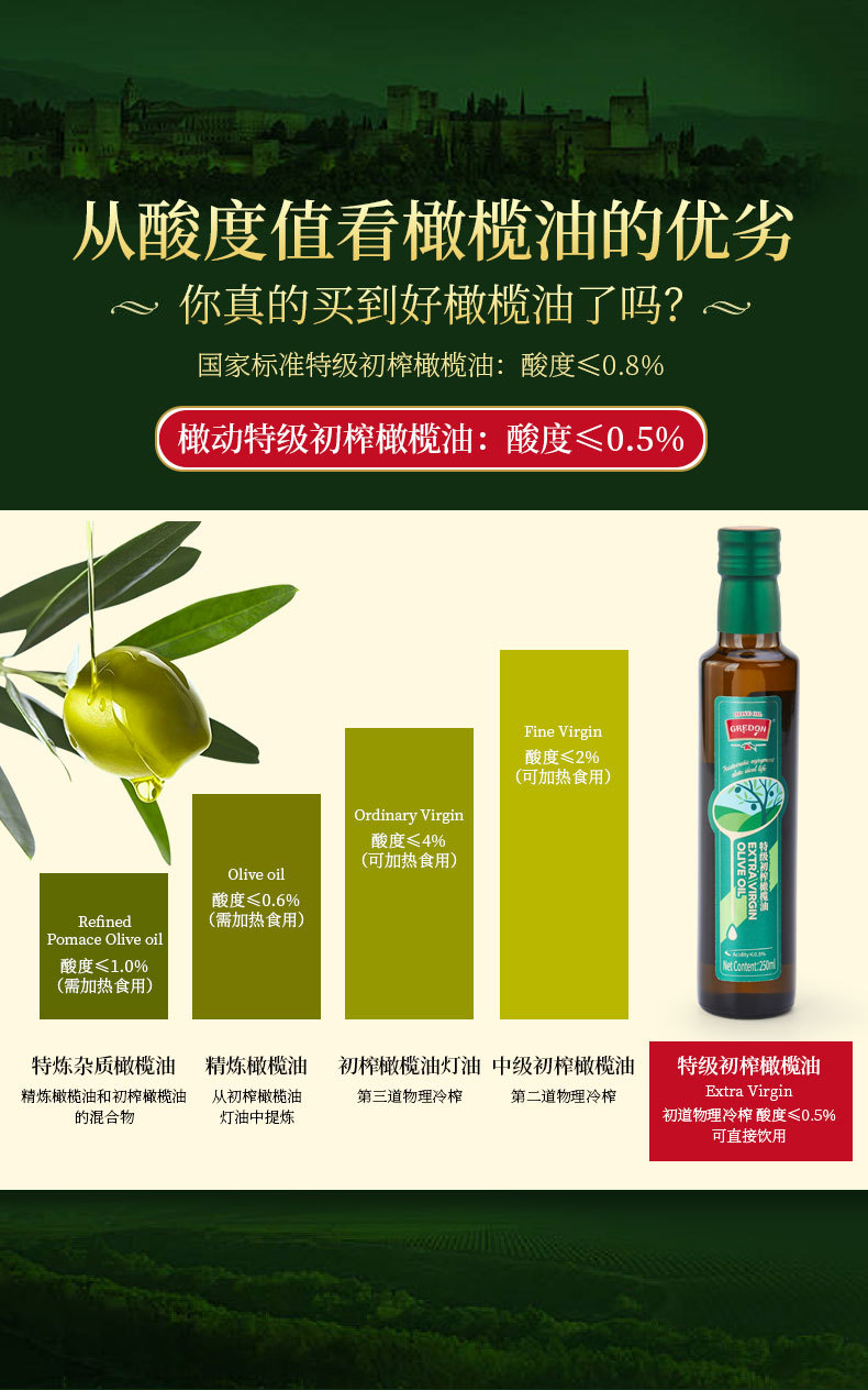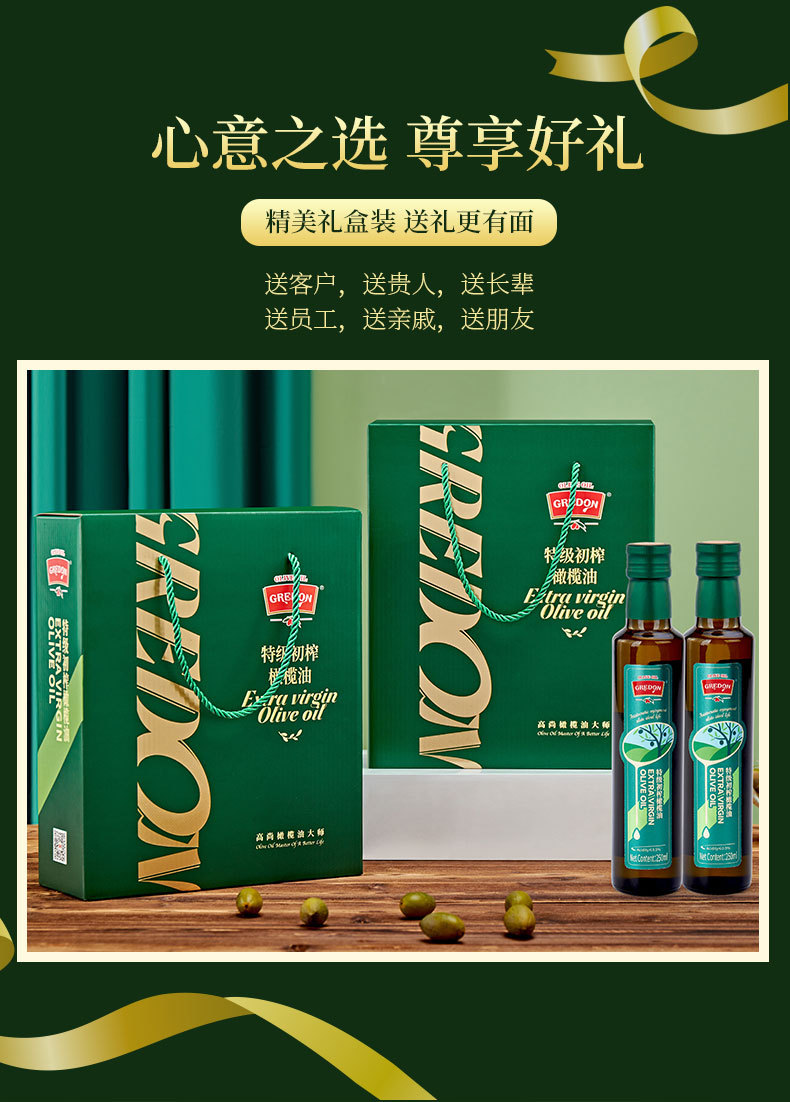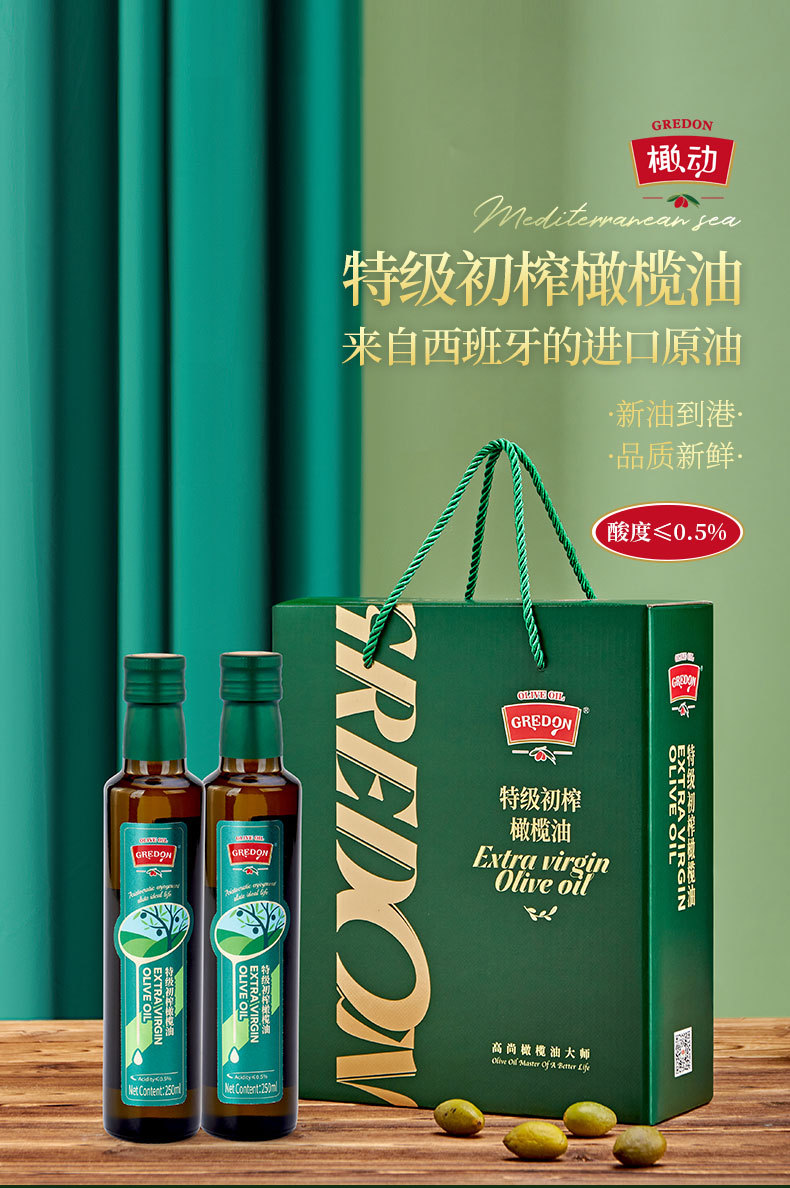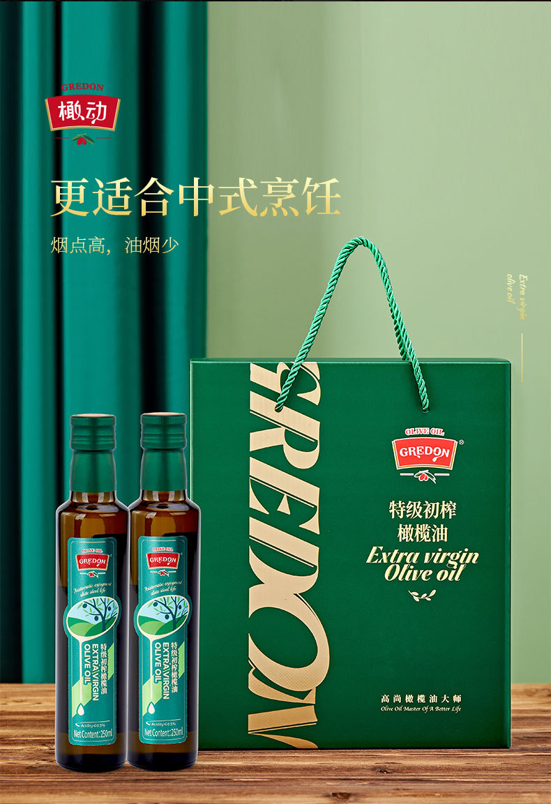 橄动特级初榨橄榄油250ml*2瓶礼盒装 进口食用油植物油