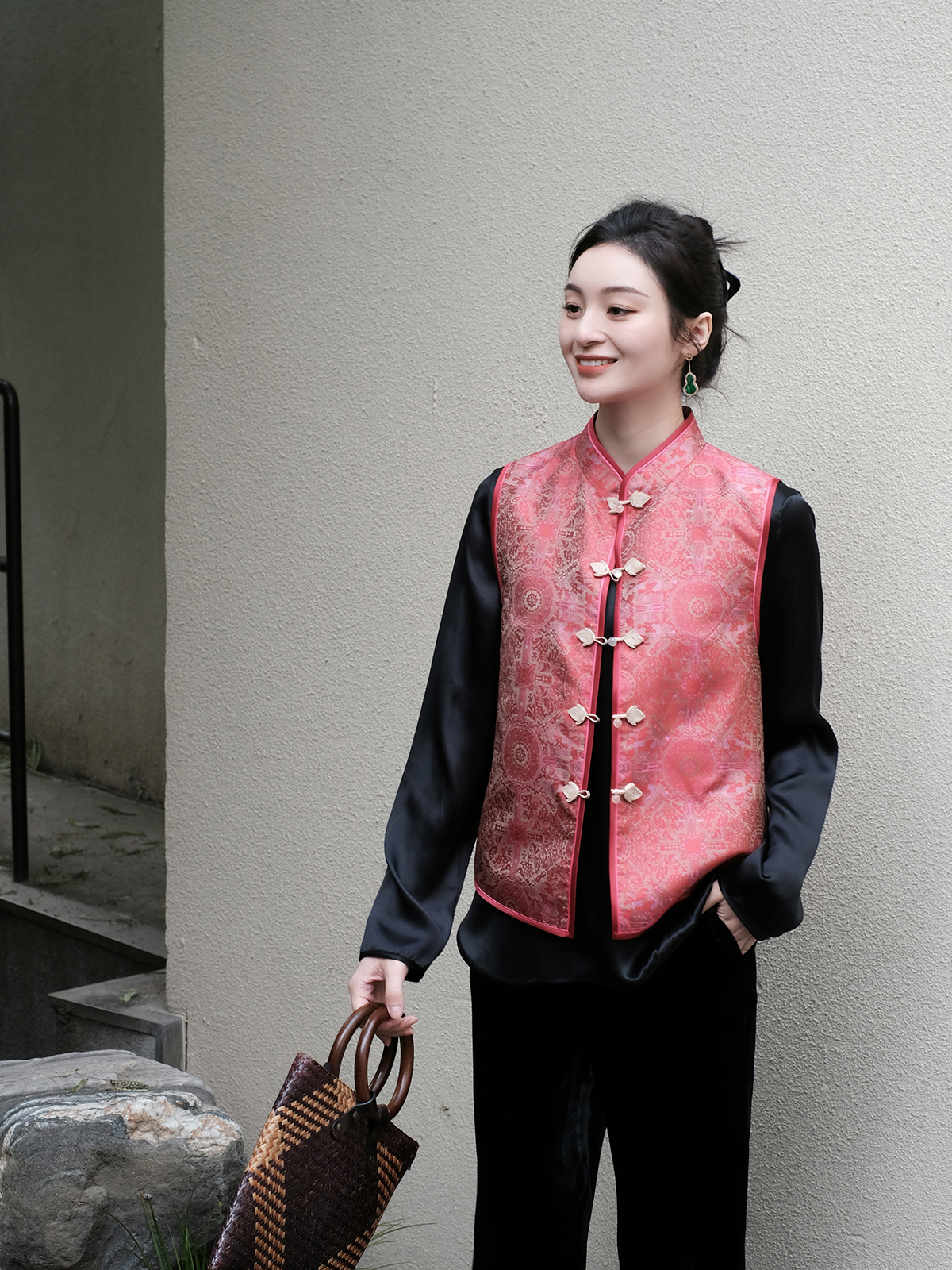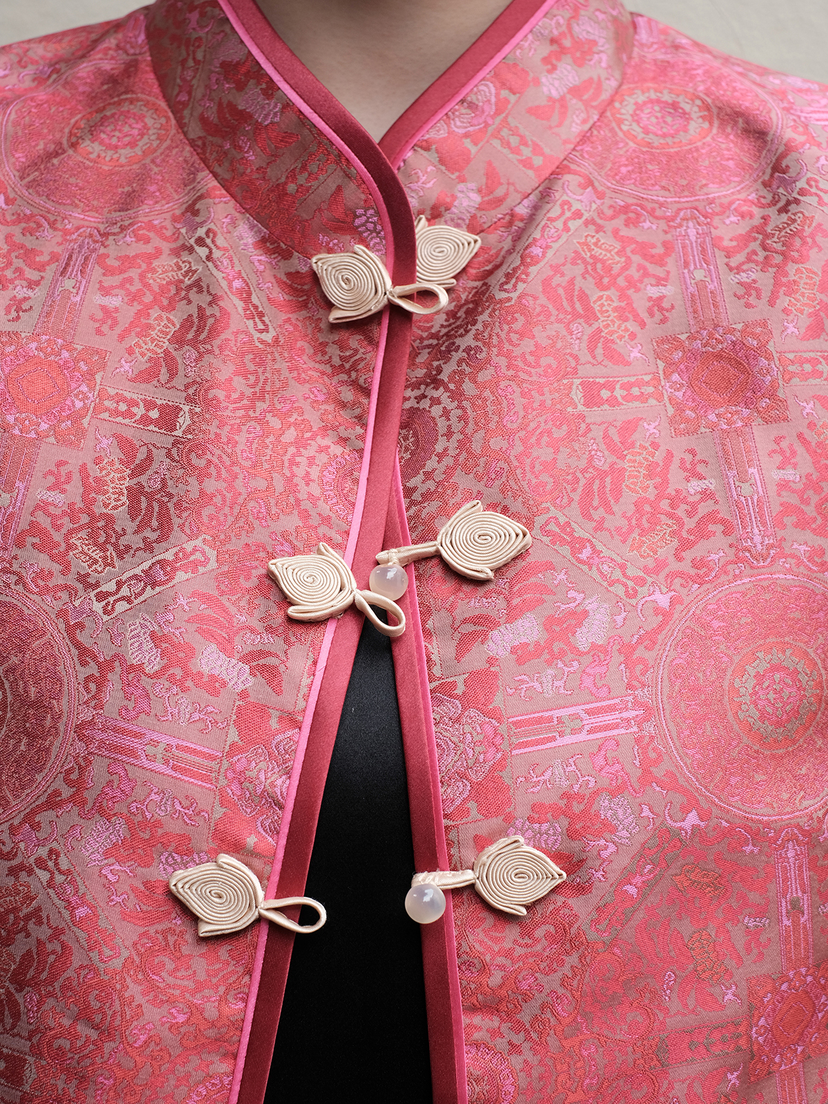 盛唐牡丹 | 宋锦八达晕纹对襟马甲