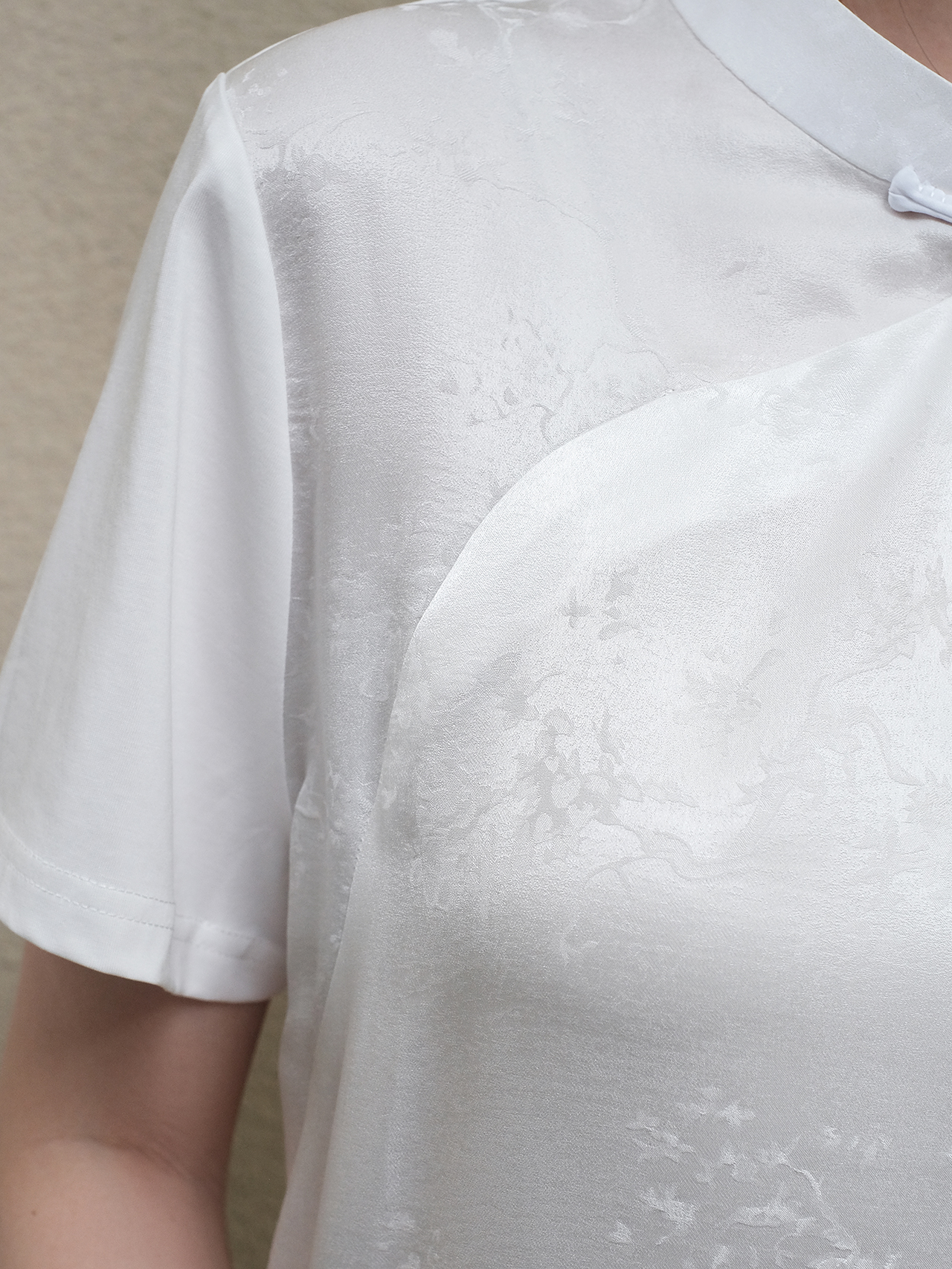 盛唐婧| 新中式小立领斜襟百搭拼接提花上衣-白色