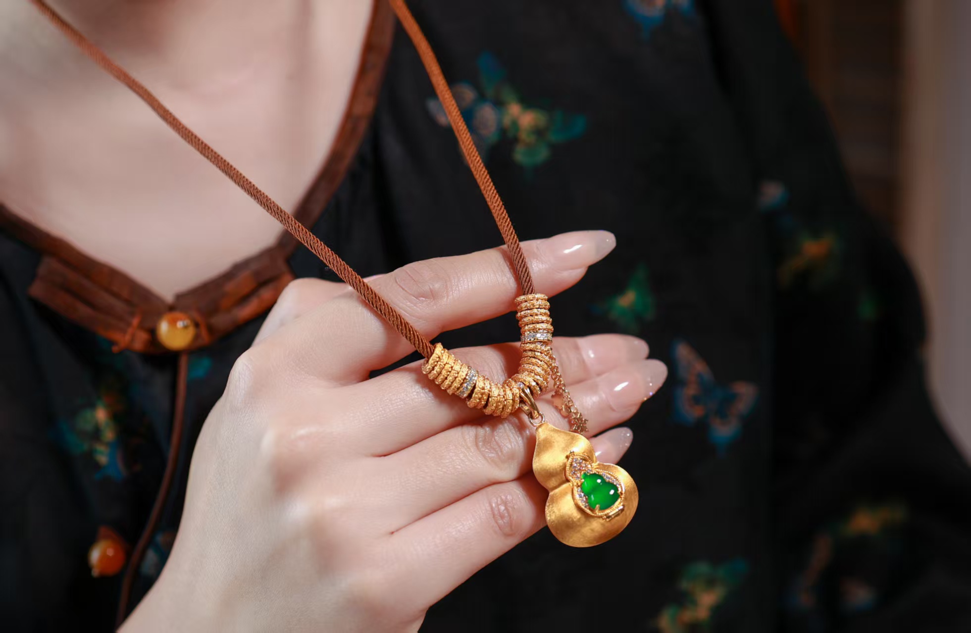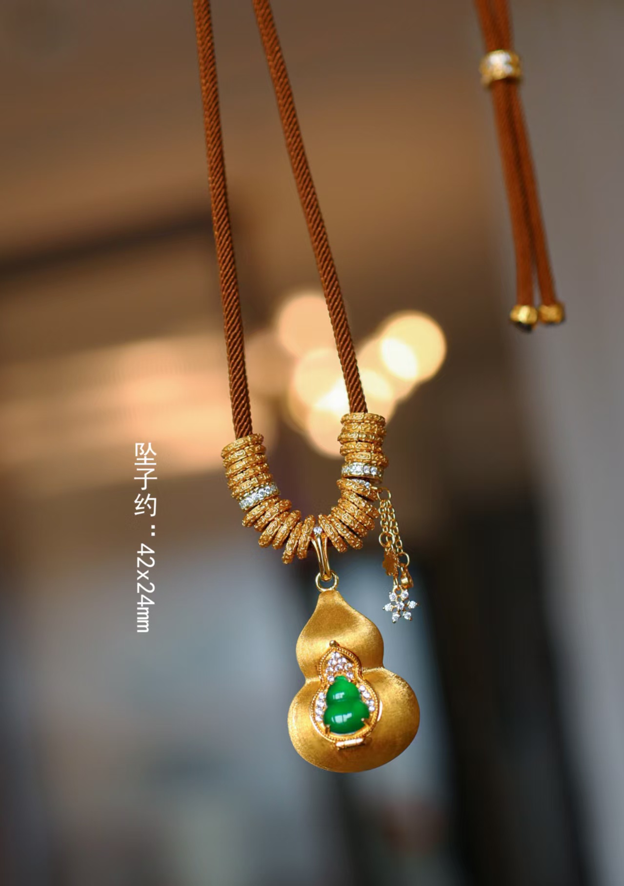葫芦做的是可以开合设计哦,内部可以放置香料、香丸小物件,兼具佩戴装饰与实用的功能,是可呼吸的东方雅韵。搭配了盘缠的链子,葫芦可拆卸。