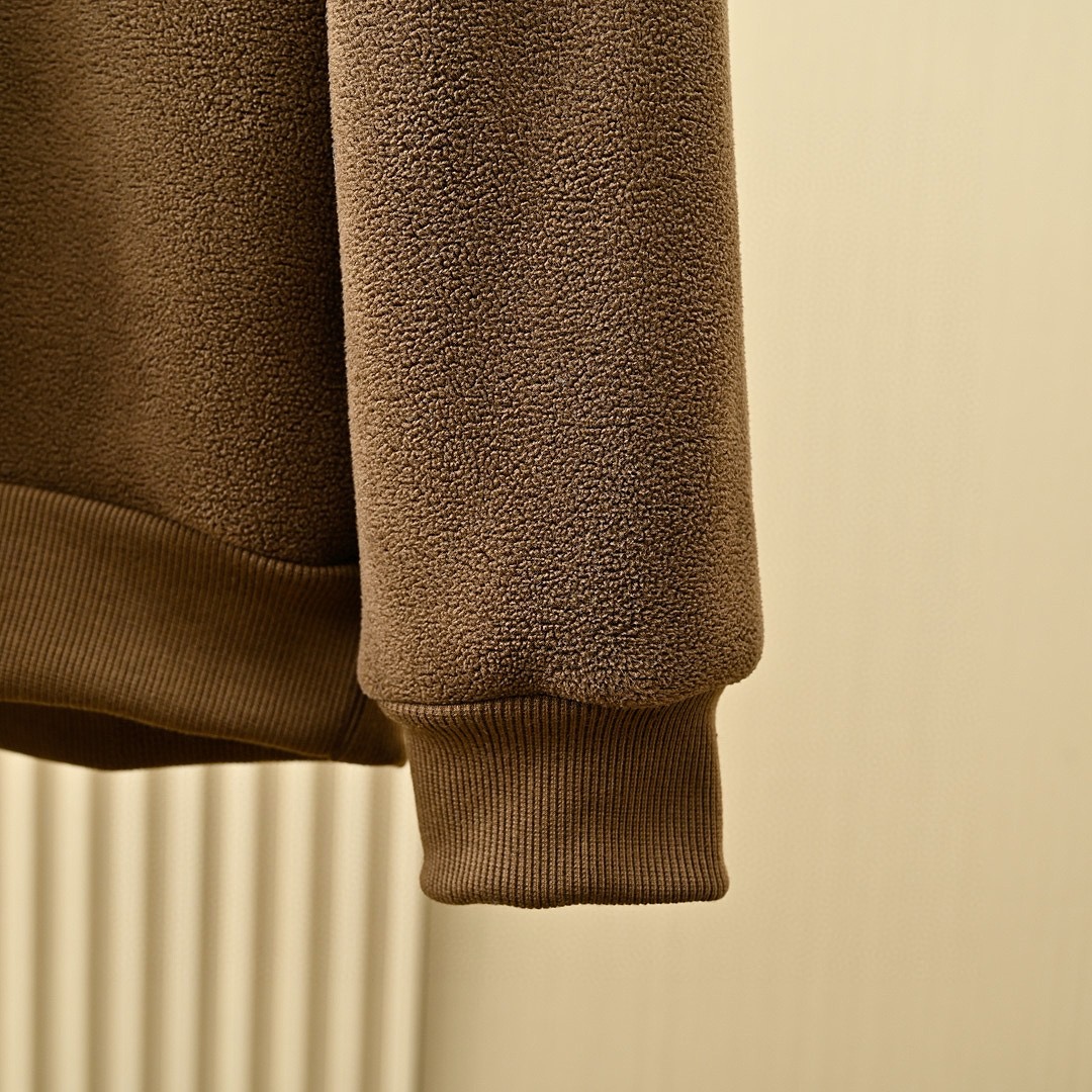 定织奥粒绒面料 轻薄保暖 不同于厚重卫衣舒适度高 圆领设计 定织染色螺纹 细节辅料原版定做 拼接处设计感十足!
