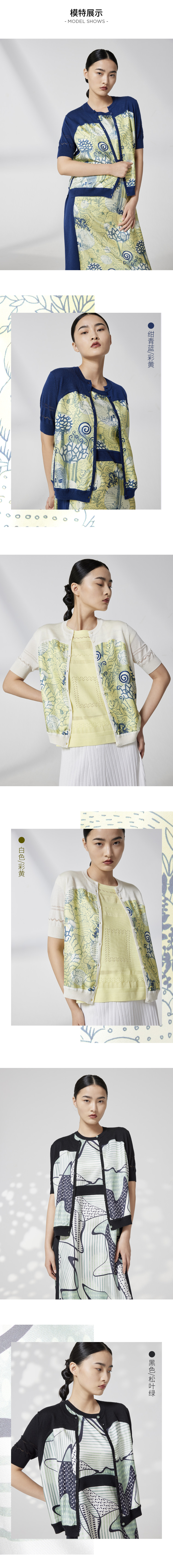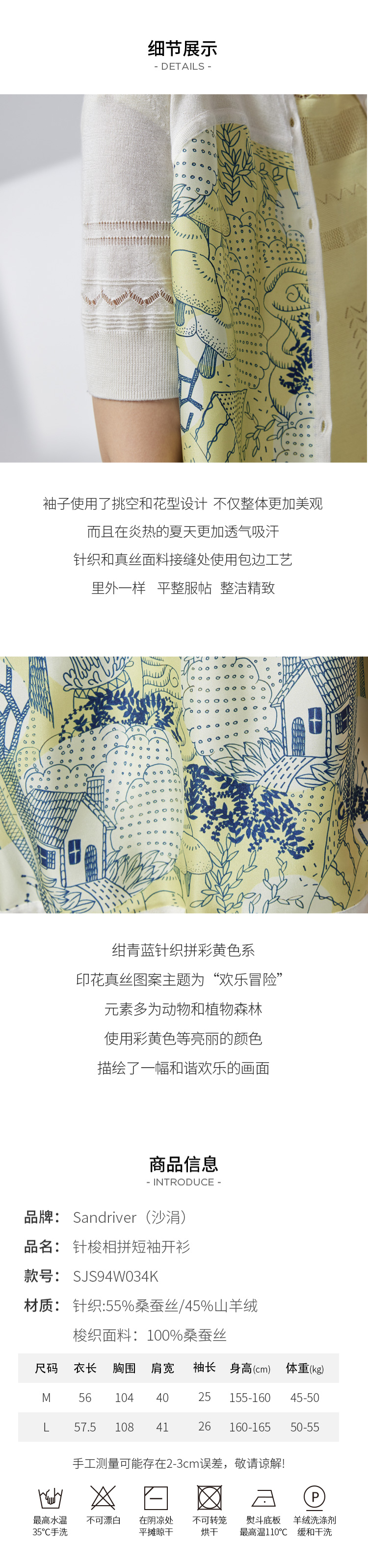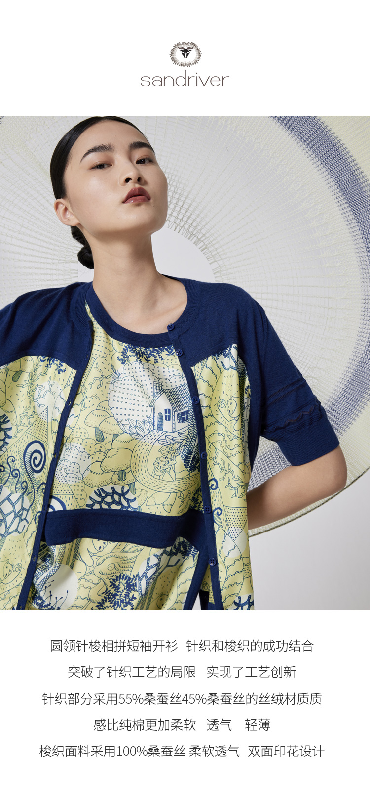 羊绒真丝针梭相拼短袖女士开衫SJS94W034K