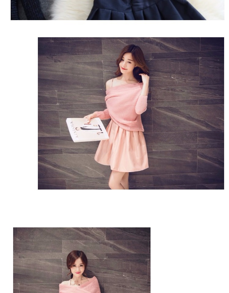 【服饰鞋包】秋冬新款不规则毛衣+吊带连衣裙俩件套女