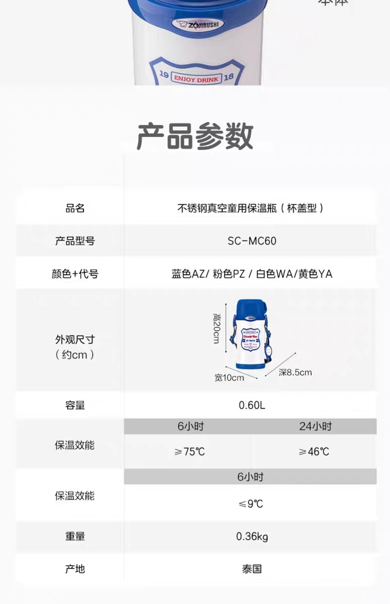 【春上新】10楼 象印 保温运动旅行壶 SC-MC60 吊牌价599元 活动价259元