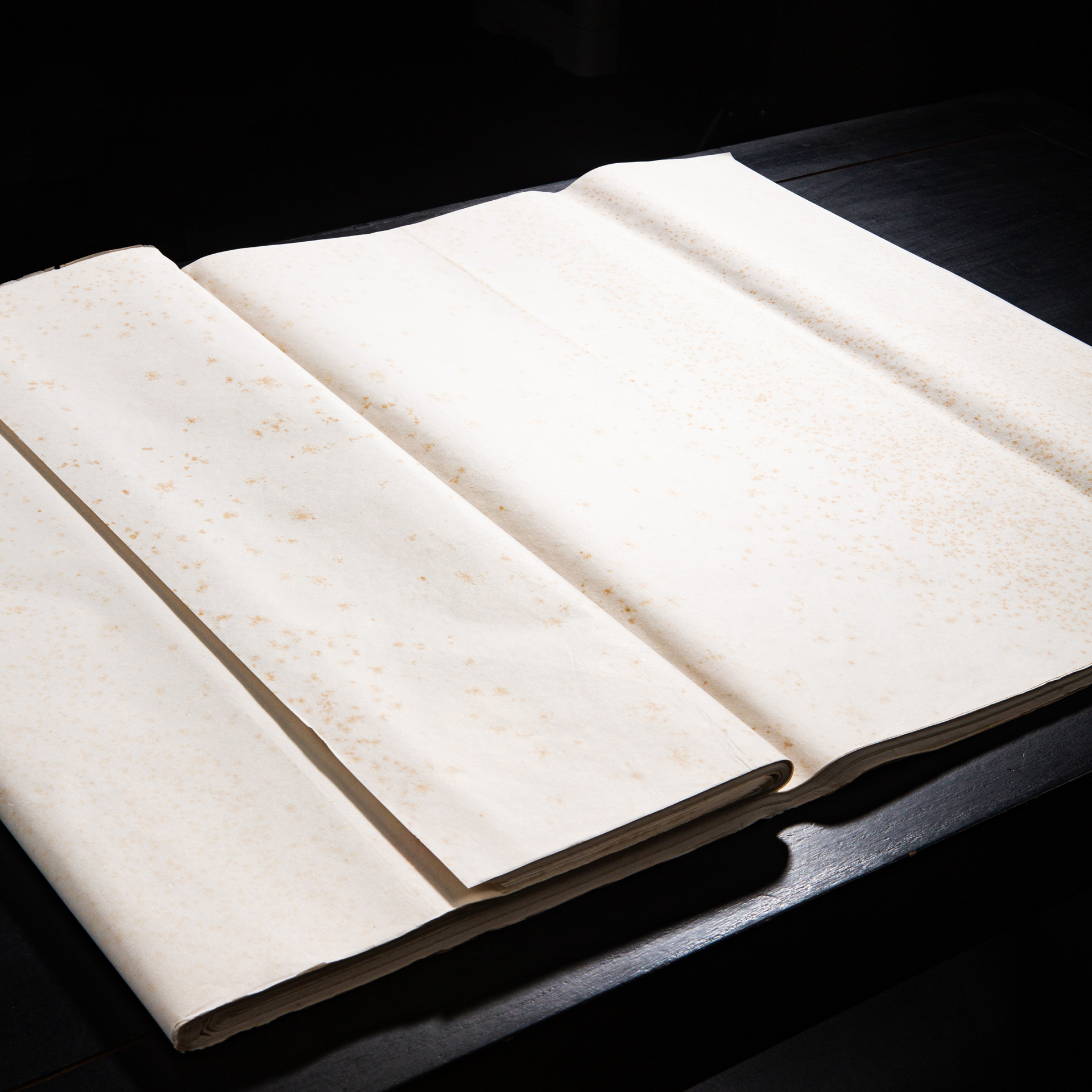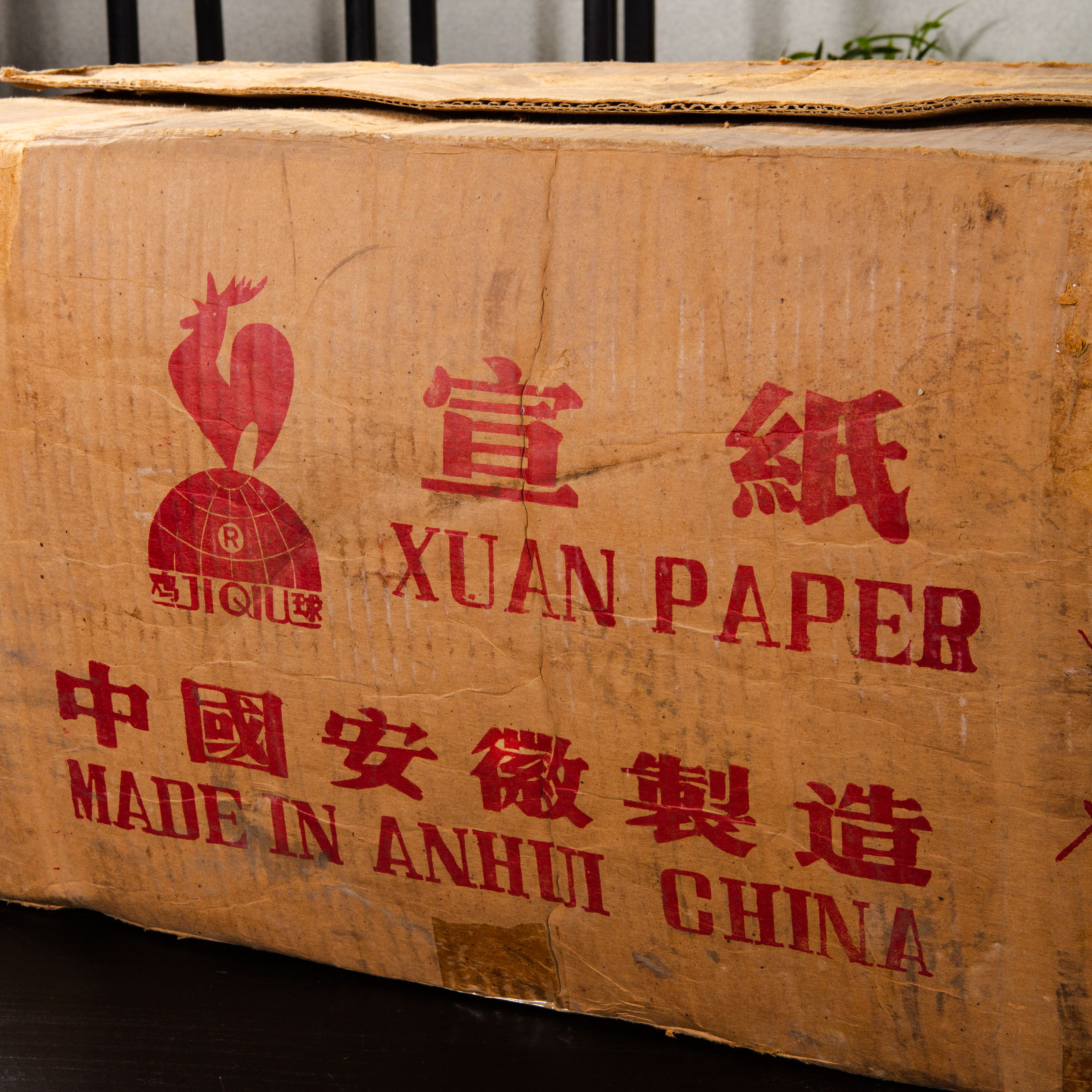 80年代鸡球牌四尺棉料重单宣。此纸是国营安徽泾县宣纸二厂当年所制,比普通单宣更厚、用料更足,其纸张质地优良,老纸已火气尽失,润墨效果极佳,宜书宜画,原箱存放,品相保存完好。泾县宣纸二厂早已不存在,老鸡球宣纸存世非常稀少,十分难得。