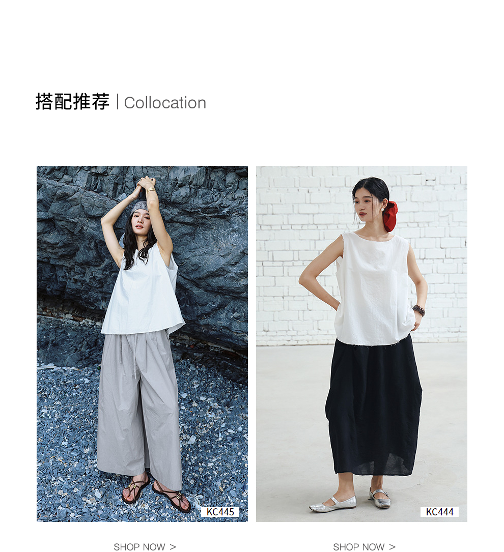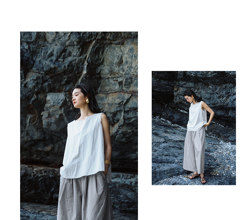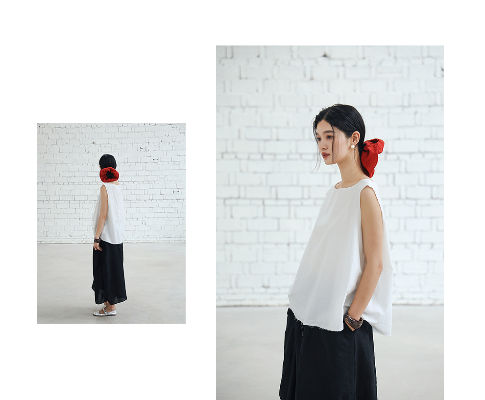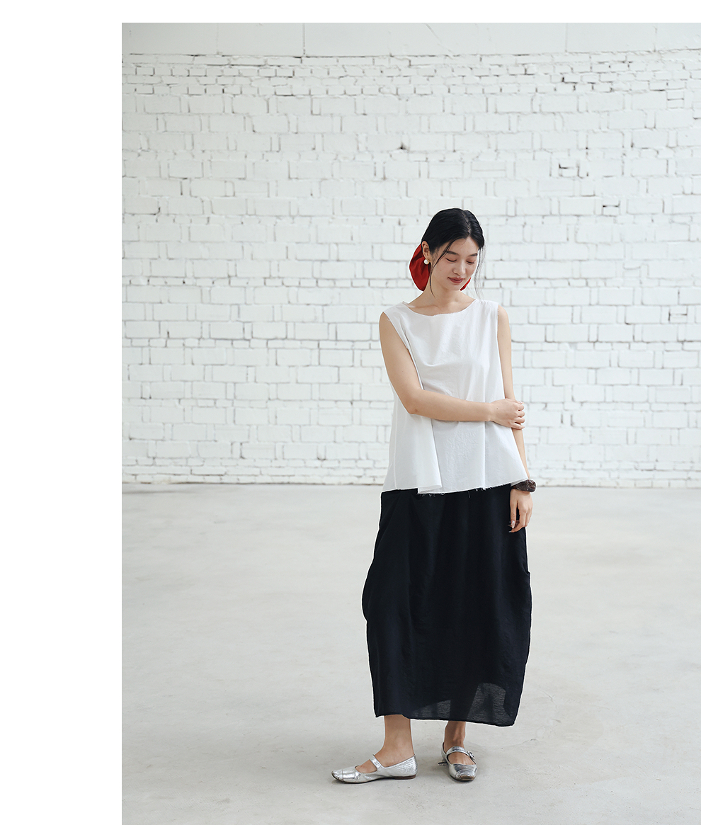 绽放女装452朵/【黑白灰系列·风穿过身体】汉麻棉毛边A摆背心女