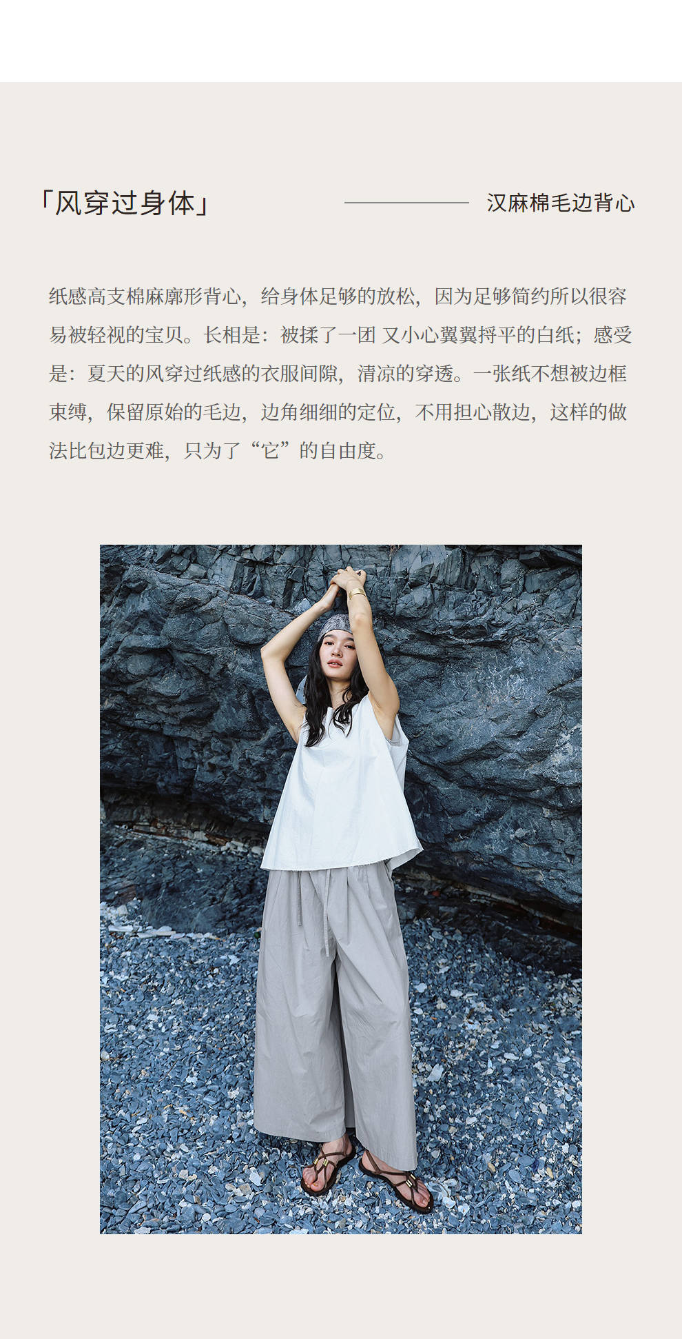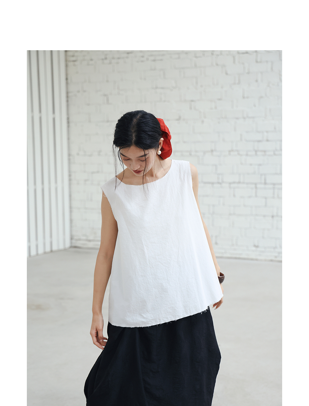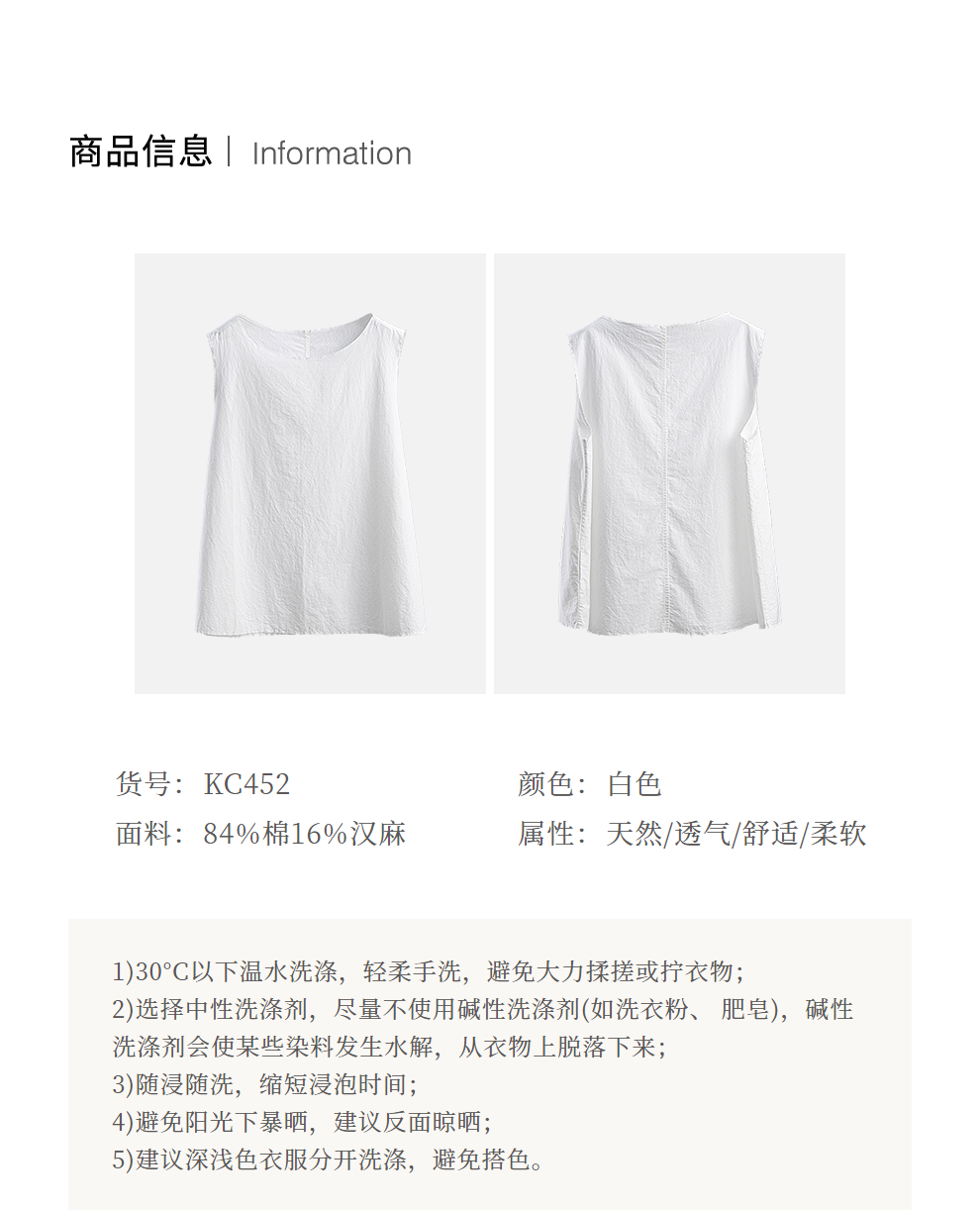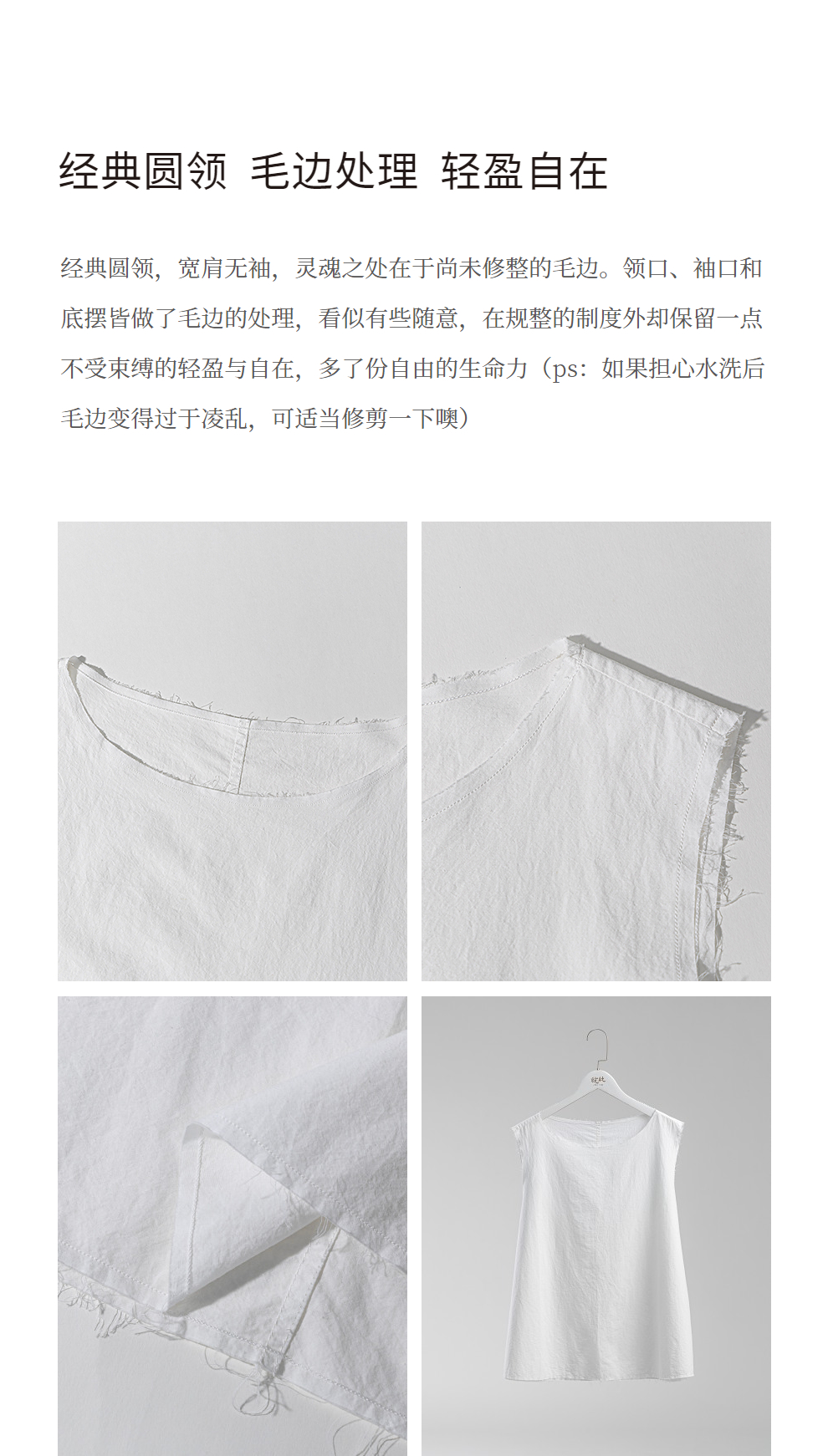 绽放女装452朵/【黑白灰系列·风穿过身体】汉麻棉毛边A摆背心女