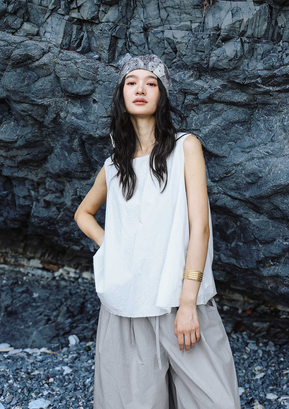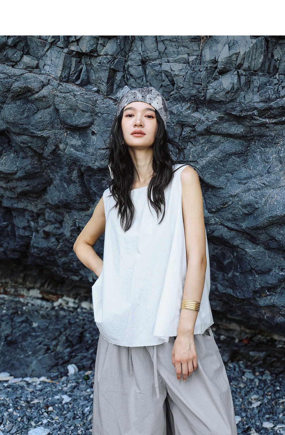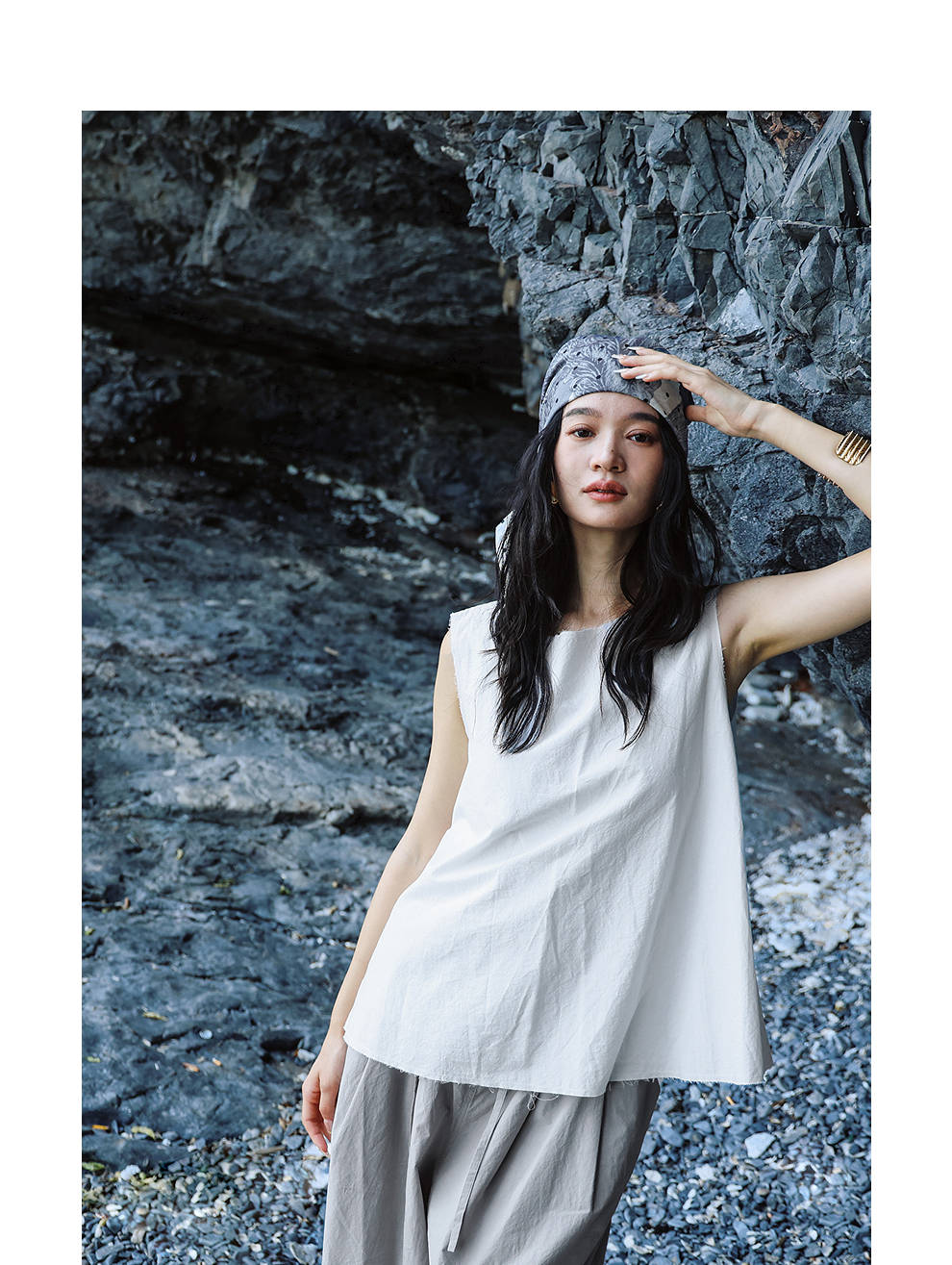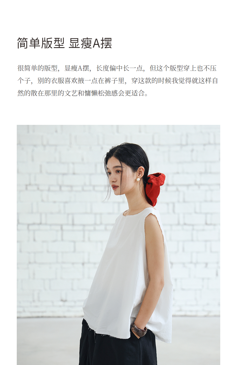 绽放女装452朵/【黑白灰系列·风穿过身体】汉麻棉毛边A摆背心女