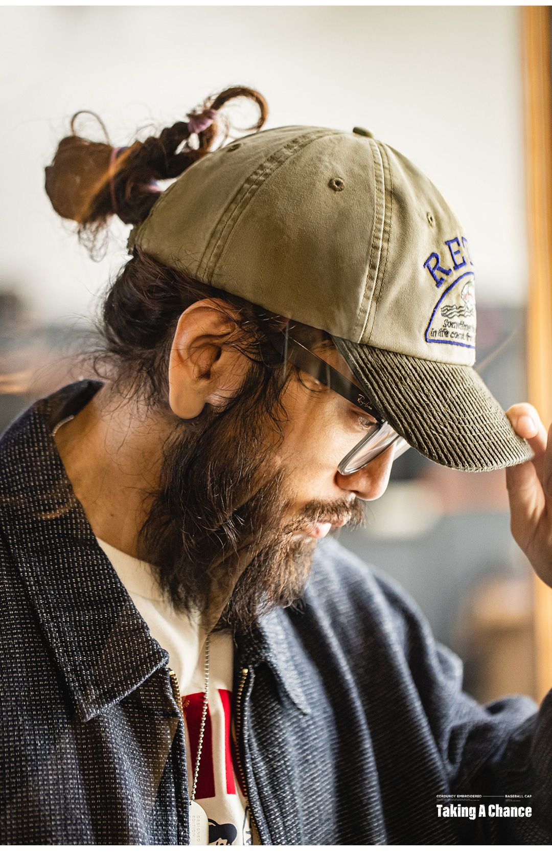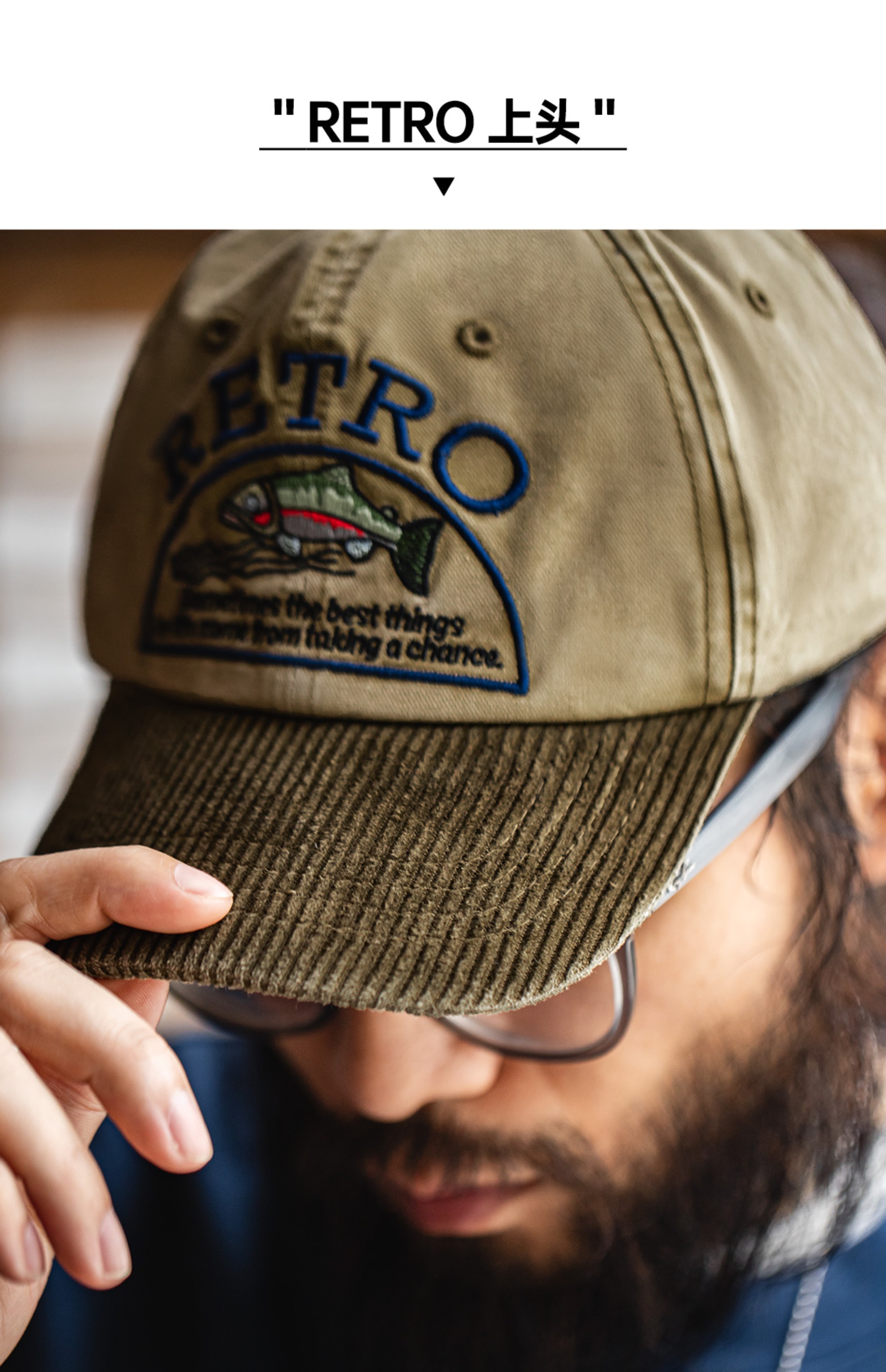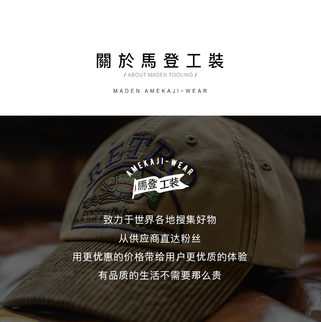 马登工装美式复古棒球帽弯檐卡车司机卡其色灯芯绒硬顶鸭舌帽子男