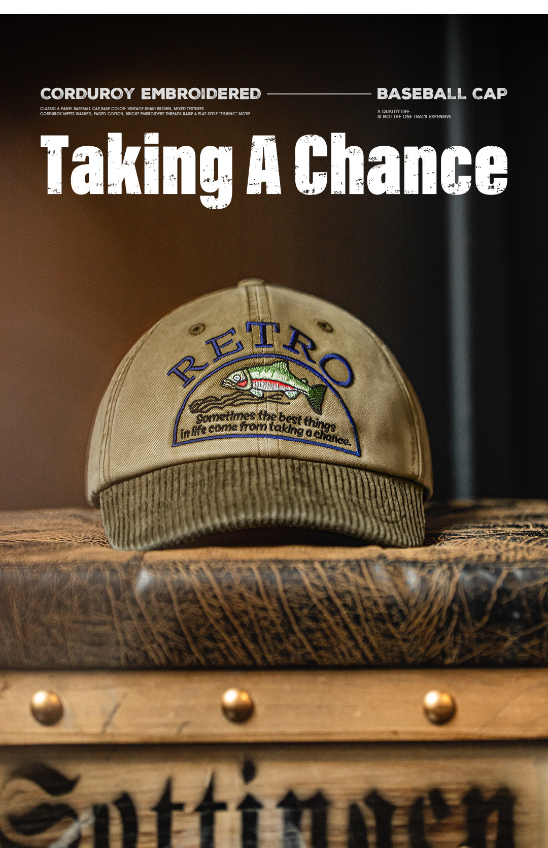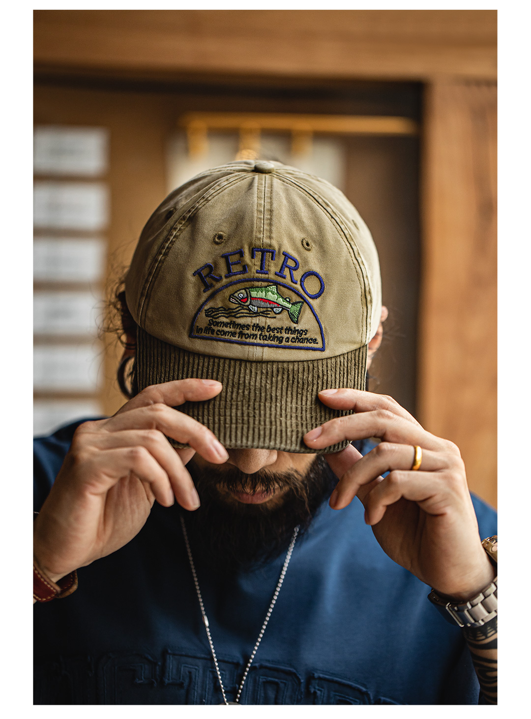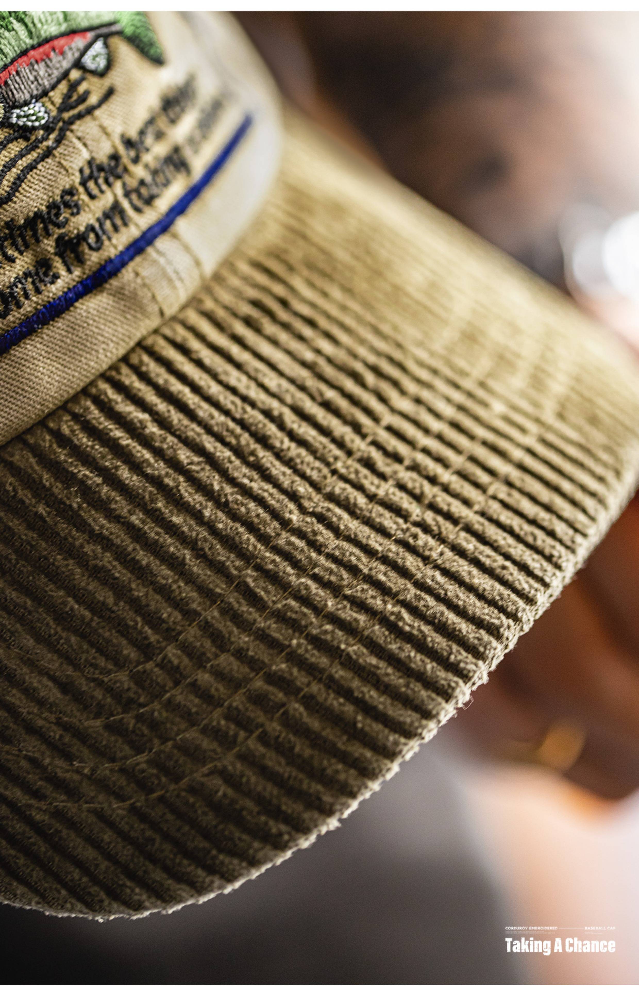 马登工装美式复古棒球帽弯檐卡车司机卡其色灯芯绒硬顶鸭舌帽子男