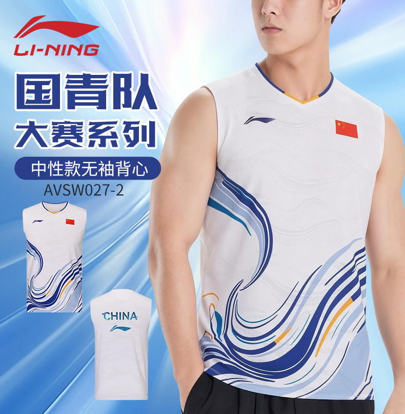 李宁羽毛球服国青队大赛系列运动无袖背心AVSW027透气短袖上衣