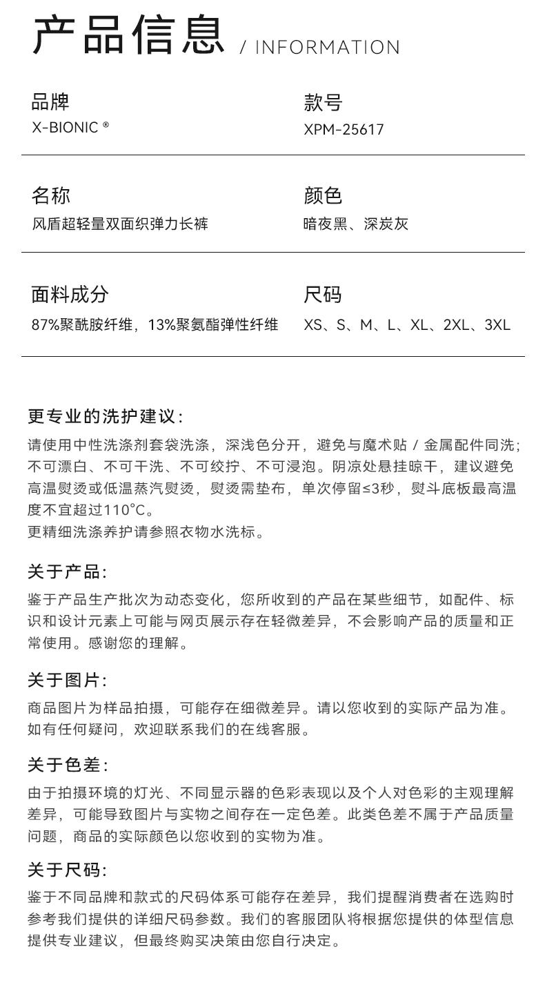 X-BIONIC 风盾超轻量双面织男士长裤弹力舒适拒水耐磨XPM-25617