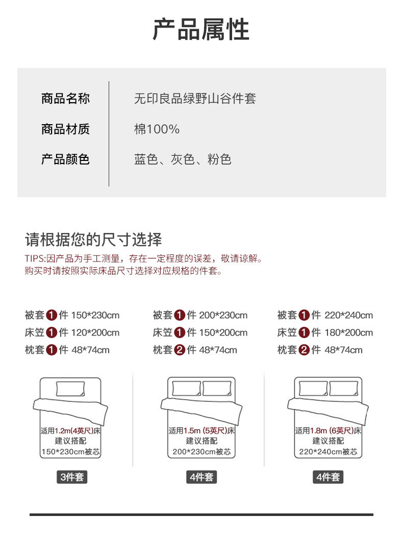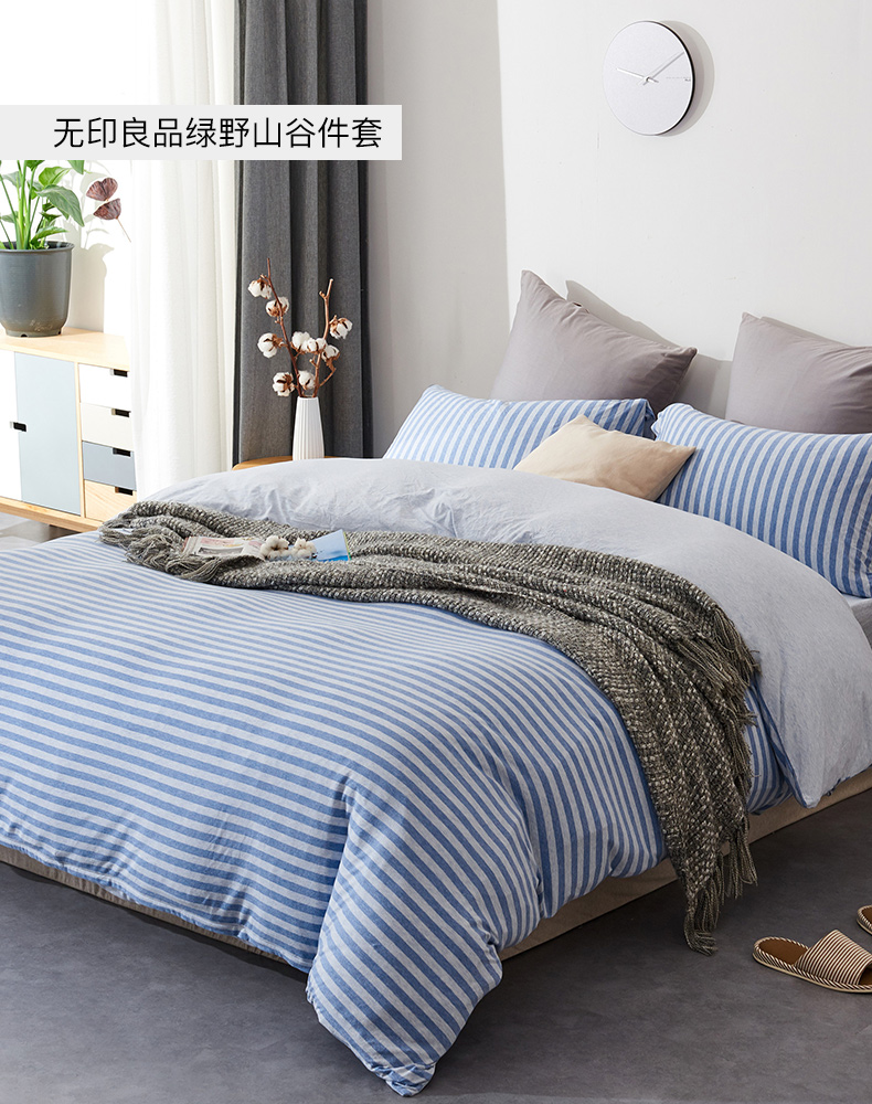 绿野山谷床上四件套全棉纯棉日式床笠款被套床罩多件套 无印良品