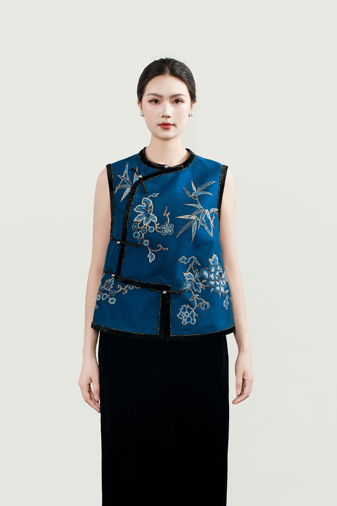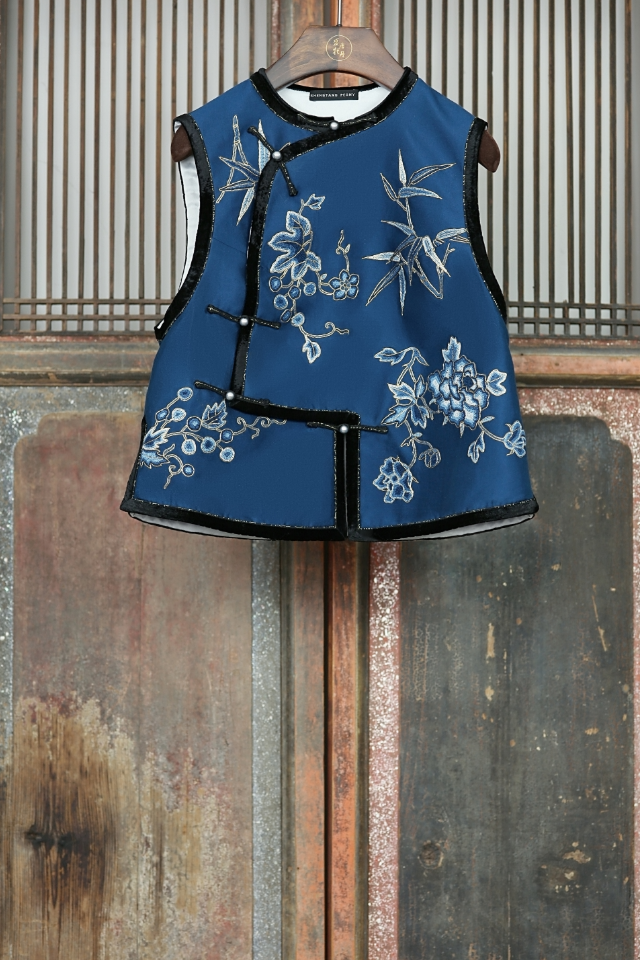 盛唐牡丹大师系列 | 真丝手绣打籽绣偏襟马甲 (盛唐牡丹与非遗传承人王小潇联名系列)