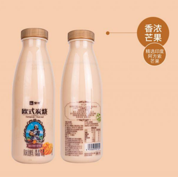 【蒙牛欧式炭烧风味发酵乳】431g/瓶, 保质期21天