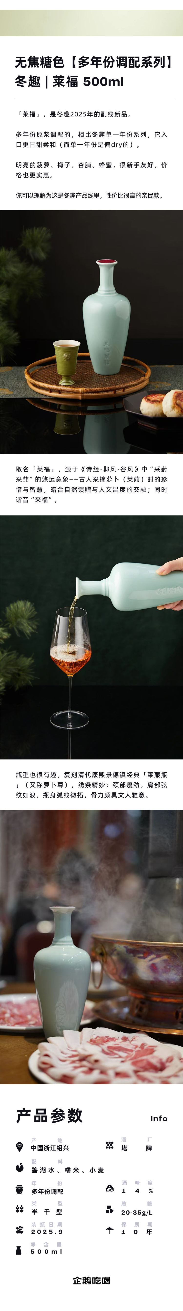 企鹅市集|冬趣 多年份调配 / 单一年份黄酒 浙江绍兴手工黄酒 入选米其林餐厅