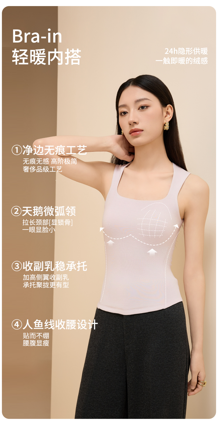 半感 【A11851】无痕净领Brain打底背心 经典黑/茶花白/柔雾粉/暖茶咖/樱桃红 商品图4
