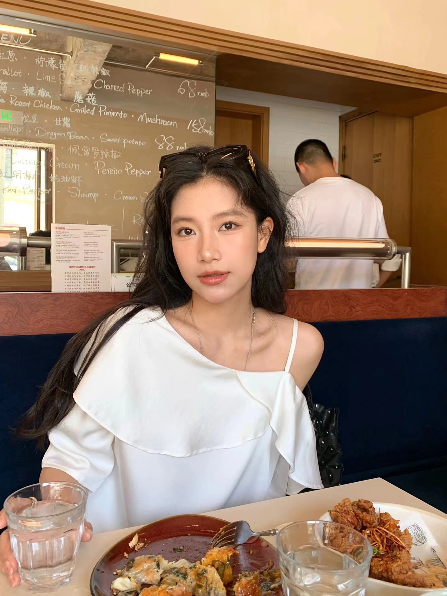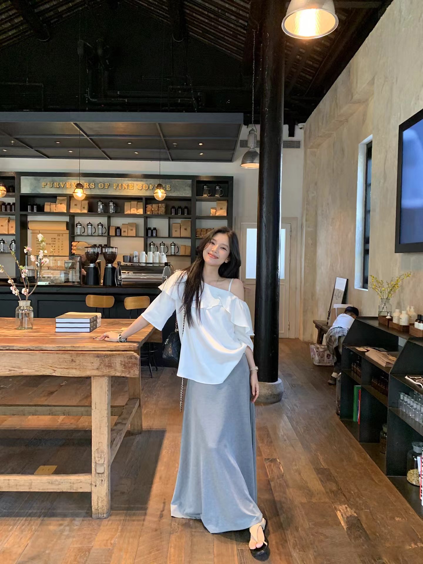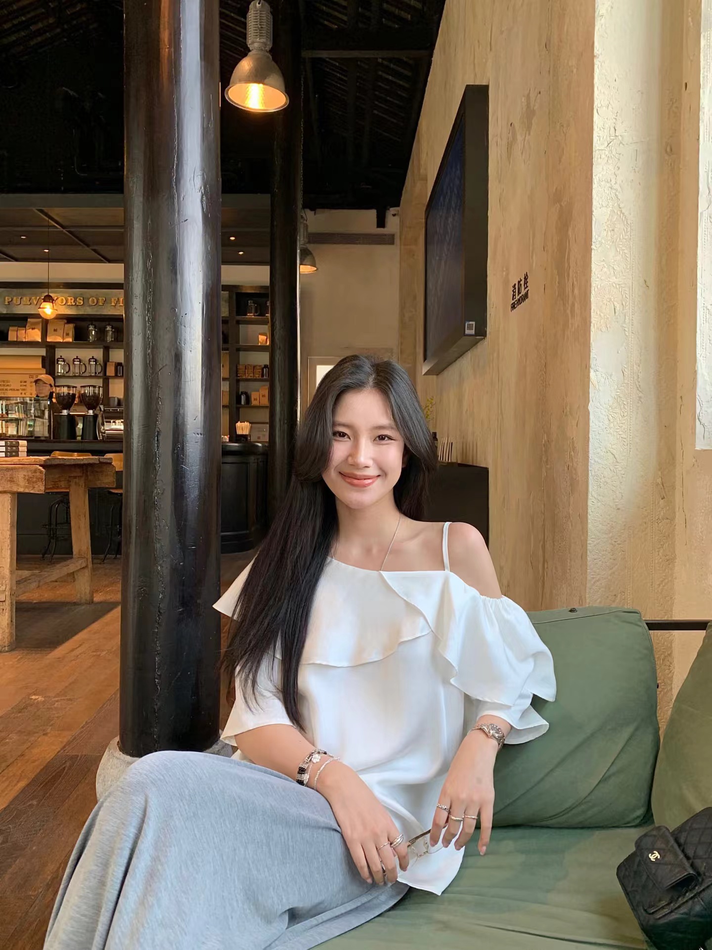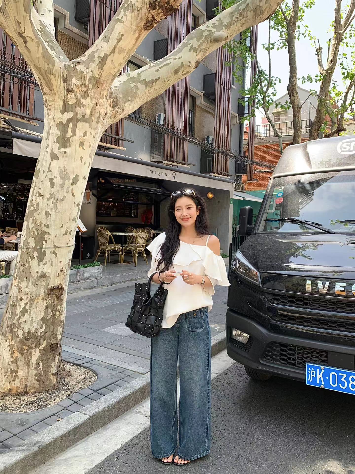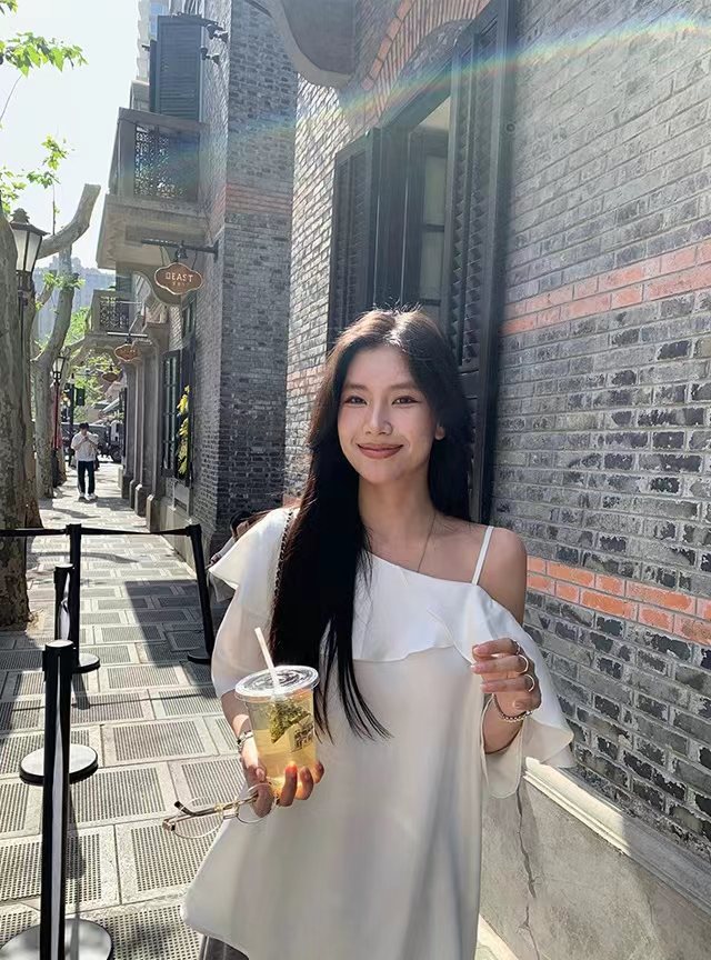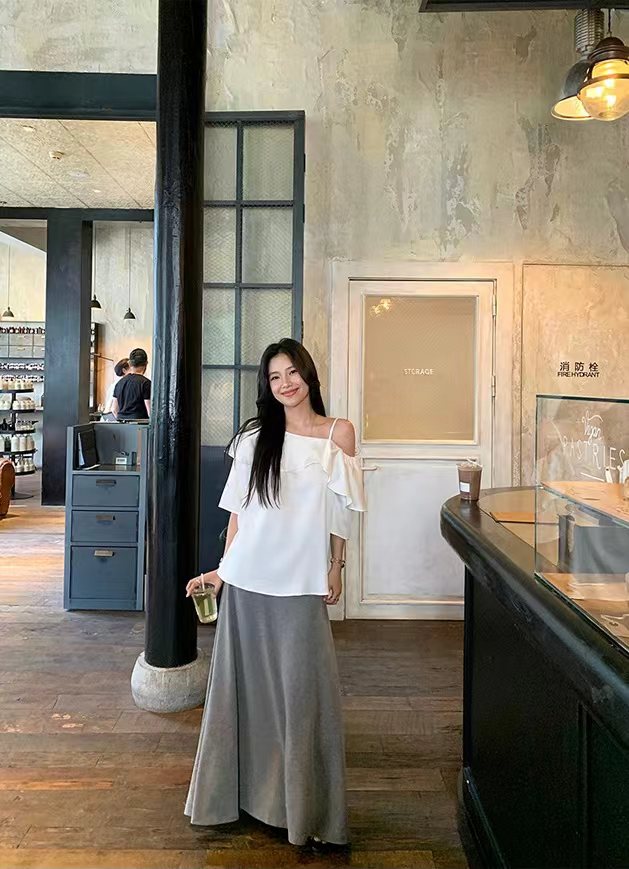 早春新款天丝莱赛尔设计感荷叶边漏肩气质短袖衬衫 穿上即时行走的白月光·珍珠白斜肩衬衫!采用佰分佰莱赛尔天丝会呼吸的月光缎面料,天然凉感分子接触肌肤舒爽透亮,垂顺自带凉感,夏天穿着无负担。单侧可调节肩带具备夏日露肤感,露出一侧精zh锁骨,自带小性感。兼具搭配性斜肩荷叶边,大尺寸荷叶边从肩线自然垂落,层次蓬松柔和,能巧妙修饰手臂线条。对有拜拜肉的女生特别友好,视觉上更显纤细。中长微喇叭袖,抬头间尽是慵懒气息!衣身采用宽松H型剪裁,不挑身材。能自然遮挡腰腹赘肉,同时保留松弛感,不会紧贴身体显臃肿。珍珠白经过柔光处理走动时泛出细腻光泽,是春夏衣橱里值得反复穿搭的百搭款。