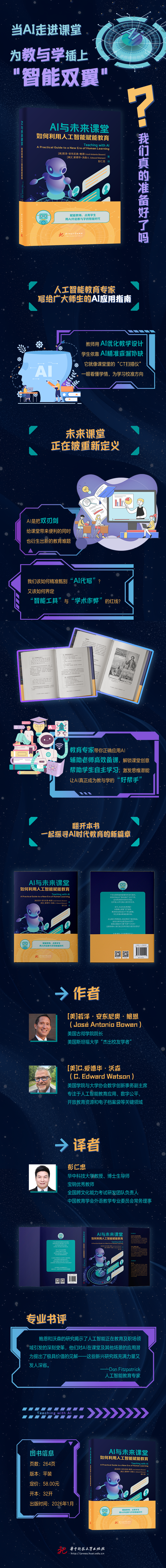 无论是想借助AI提升教学质量的教师,还是希望依靠AI高效学习的学生,都能从书中找到适配的方法,在把握AI机遇的同时,从容应对潜在风险,真正让AI成为教与学的“好帮手”。