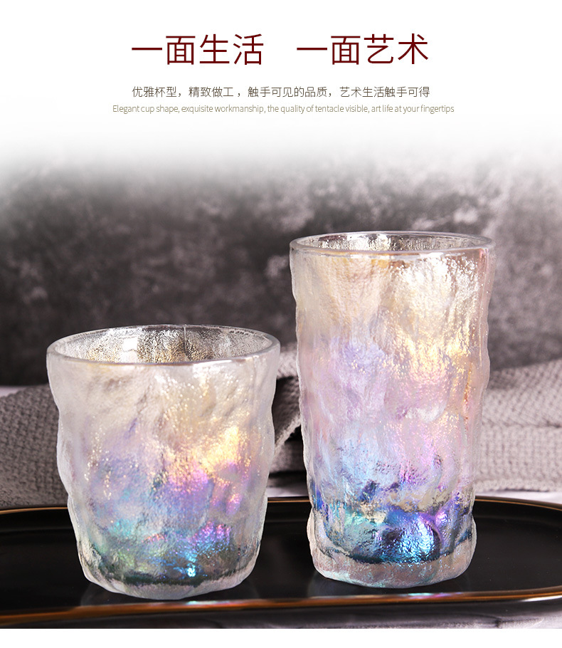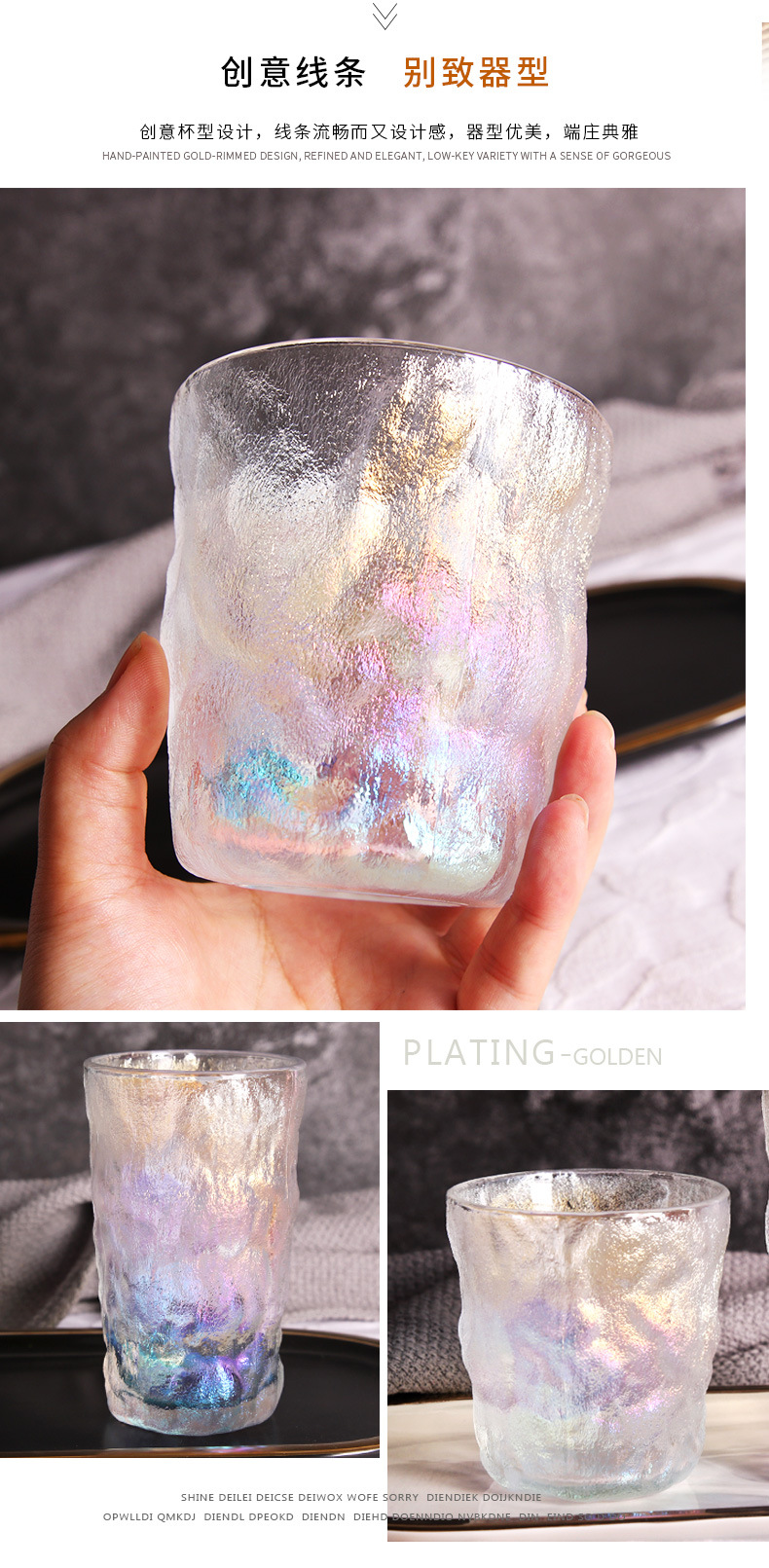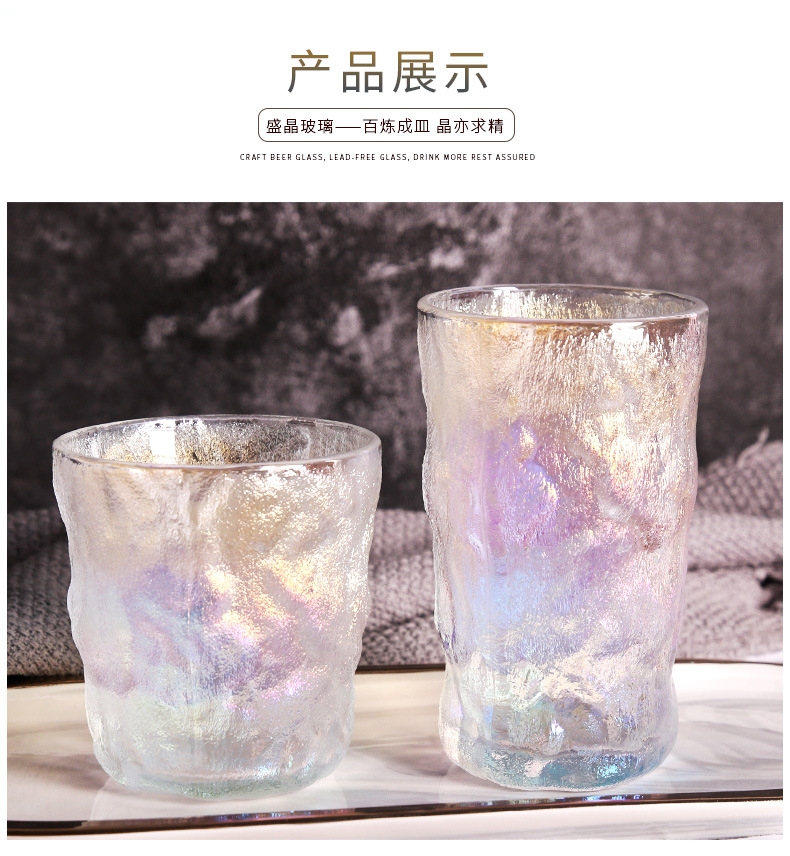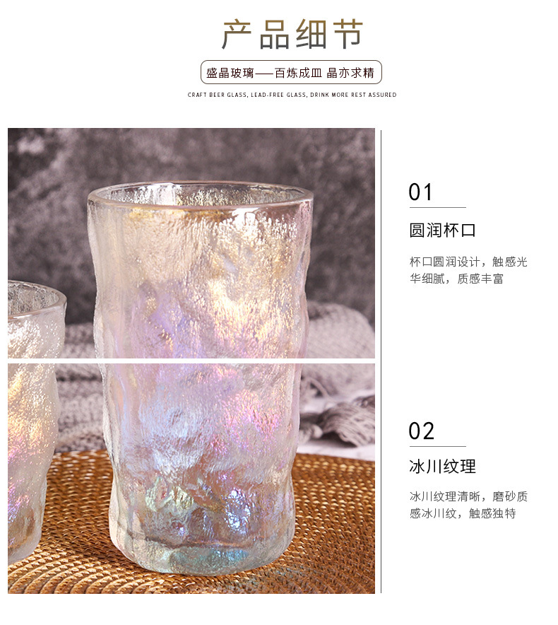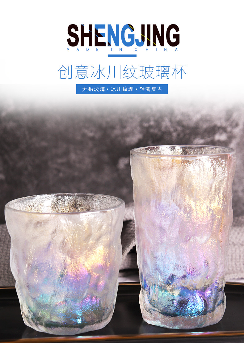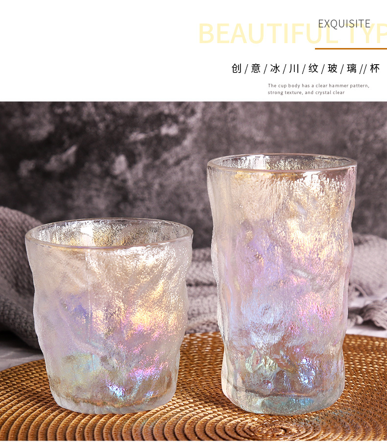 创意冰川纹玻璃水杯家用炫彩色啤酒杯茶杯早餐杯果汁杯厂家批发