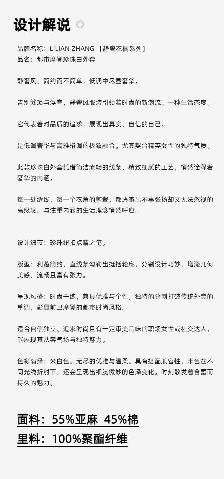 E“定制”——静奢风 ——都市摩登——风尚之选——珍珠白外套 2405032