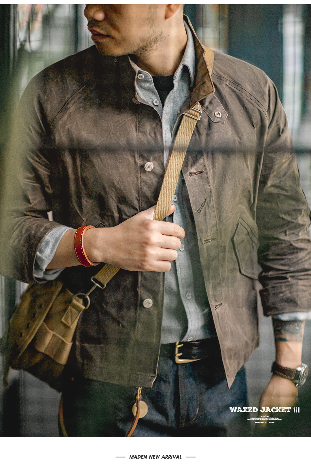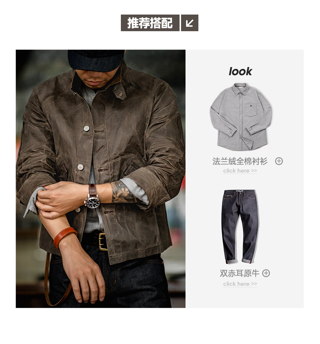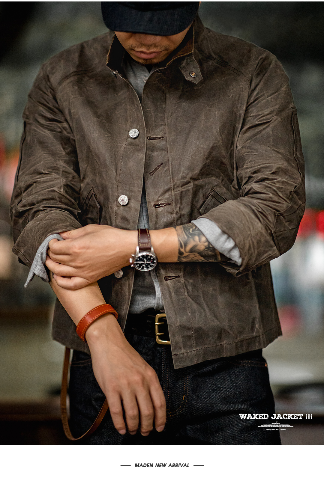 工装优选 美式复古立领帆布油蜡夹克阿美咔叽硬汉防水猎装外套男春