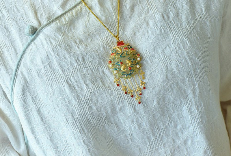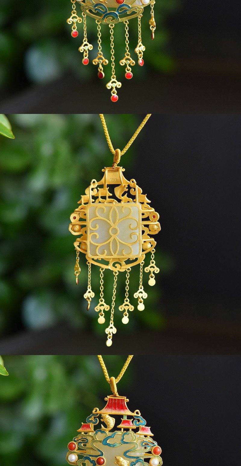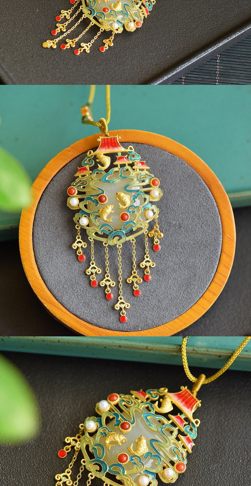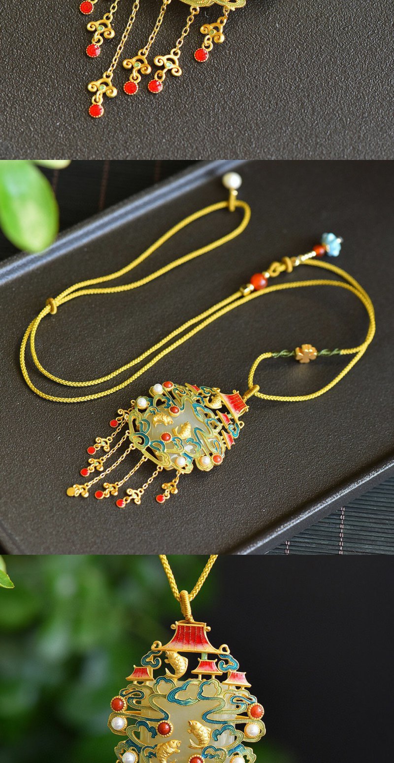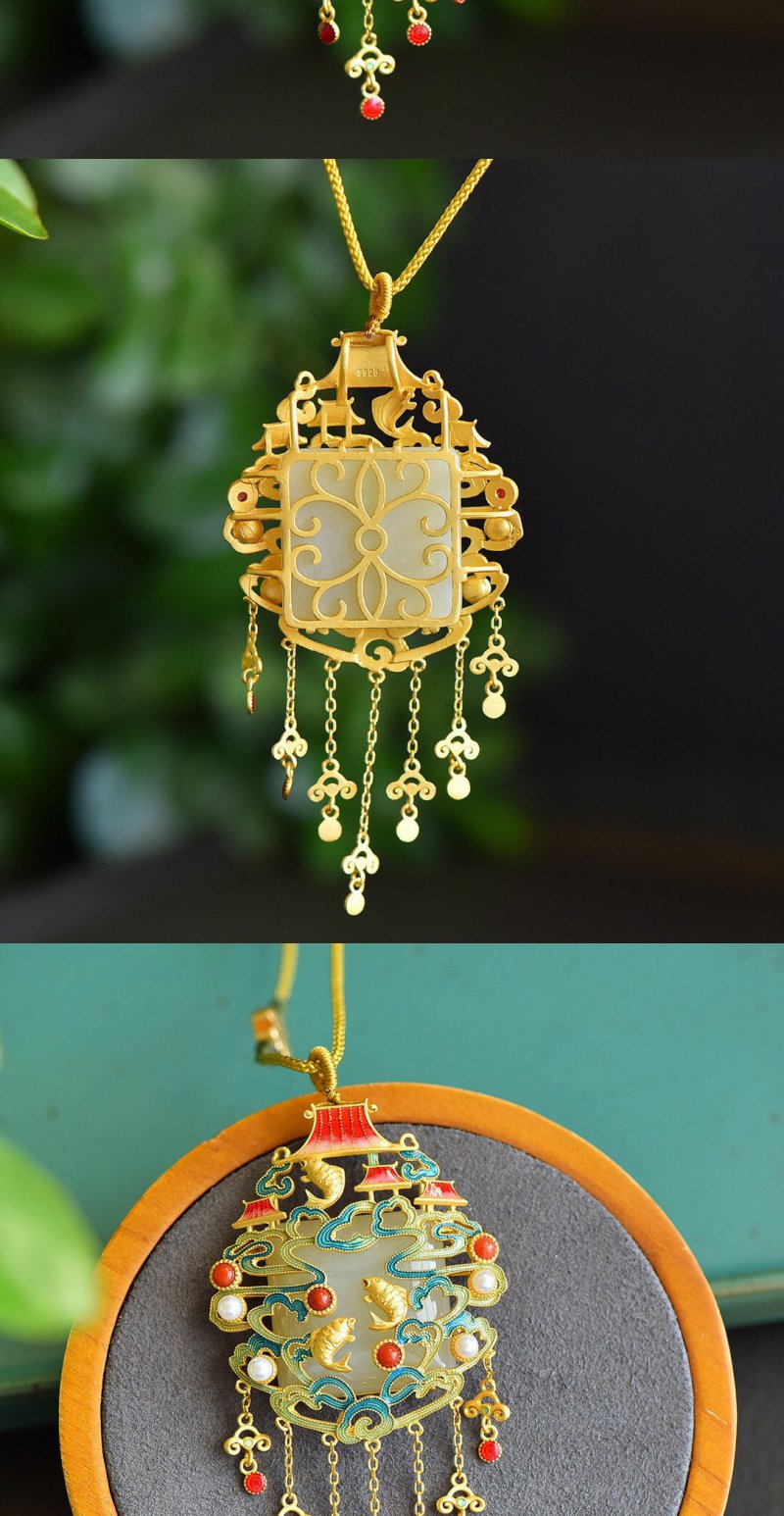 鱼跃龙门天然和田玉项链女S925纯银复古项链女民族风中国风毛衣链