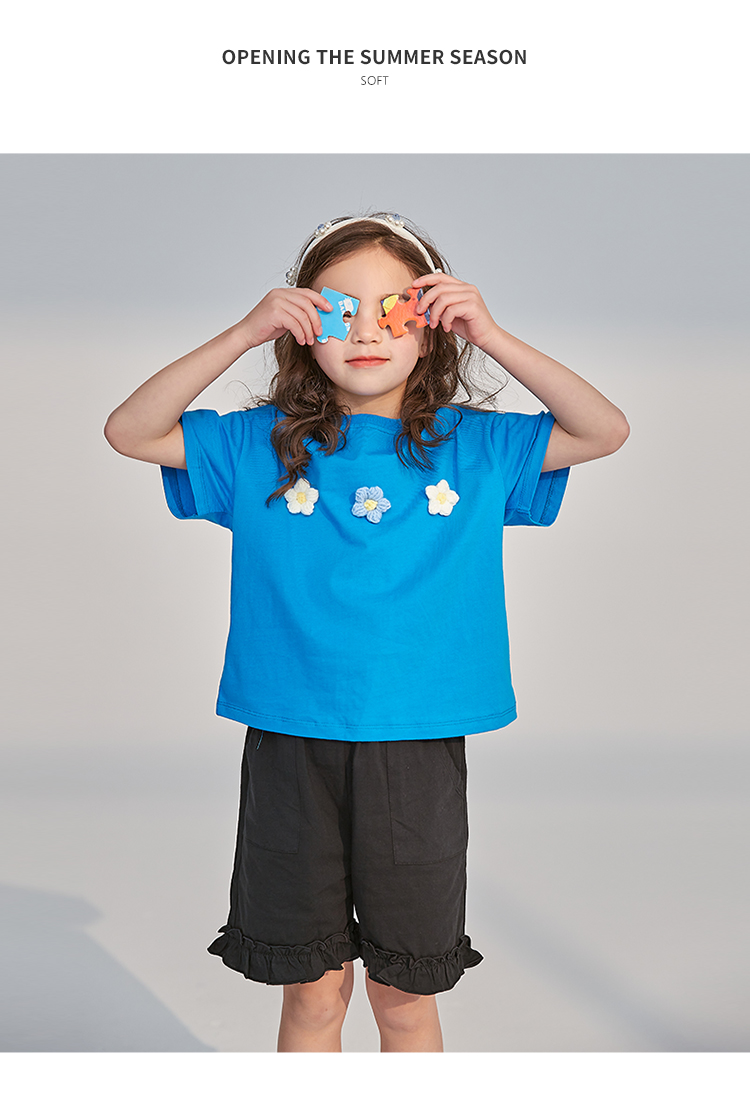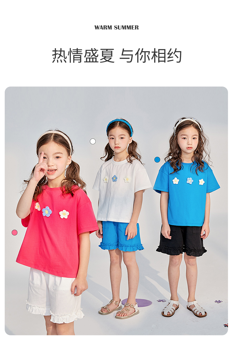 贝贝怡女童短袖套装夏季新品短袖短裤甜美清新儿童两件套