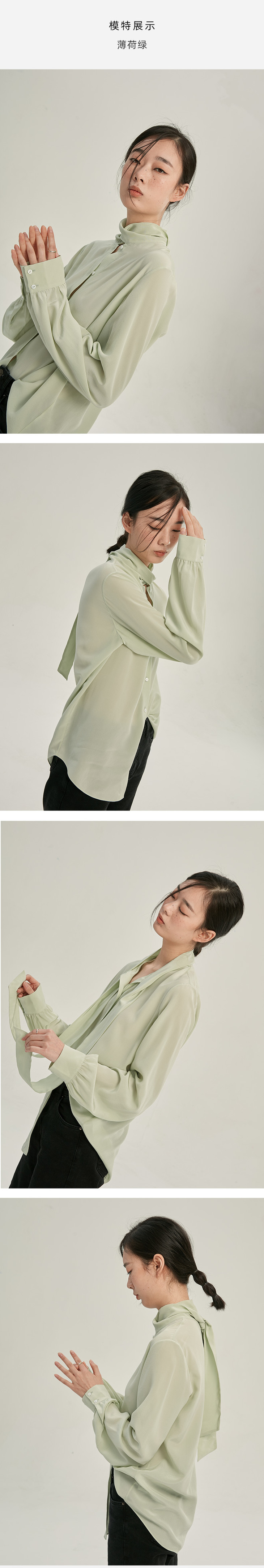 真丝系带衬衫SANGLUO薄荷绿桑蚕丝上衣多种穿搭