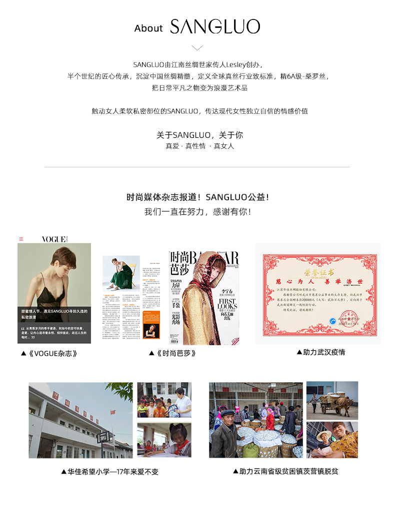 - 桑罗SANGLUO真丝奢华家居品牌,真丝睡衣睡裙,真丝四件套床品,蚕丝被,真丝内衣,真丝婴幼儿装,真丝洗涤液等。