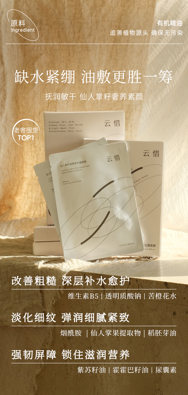 云惜 仙人掌籽油茉莉甘露面膜 4片/盒