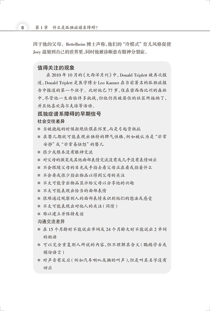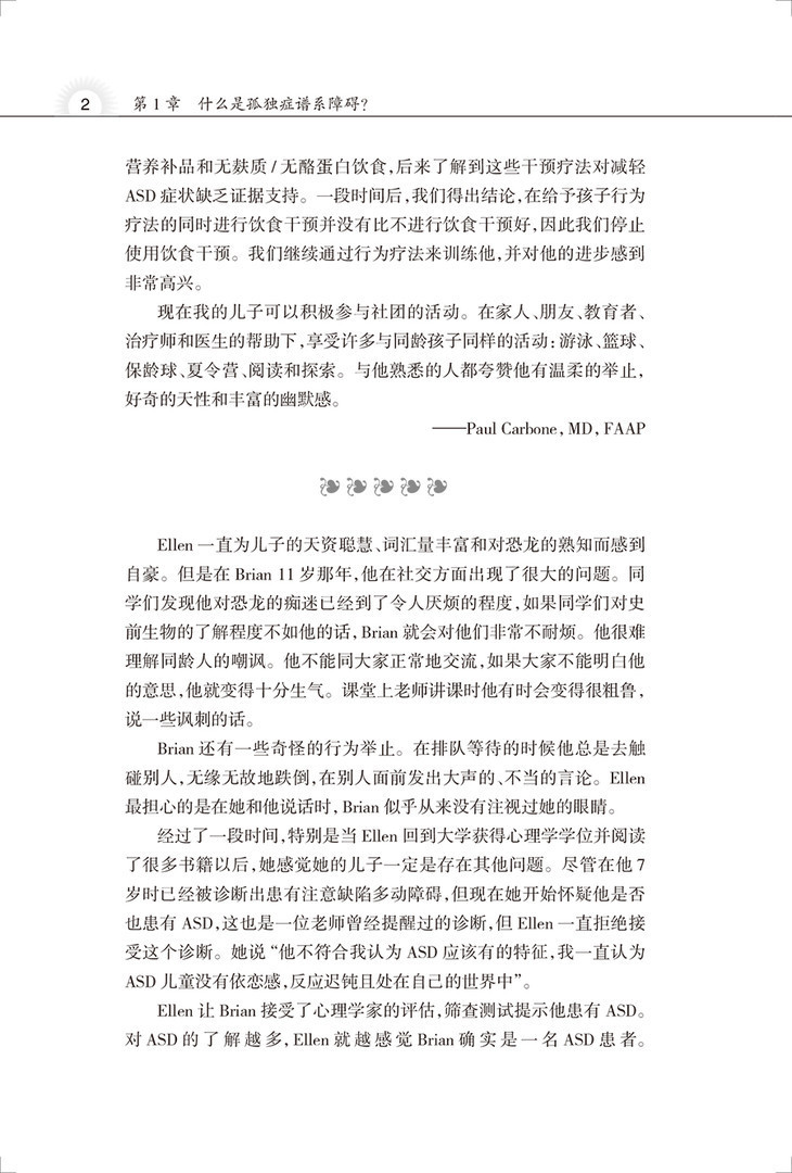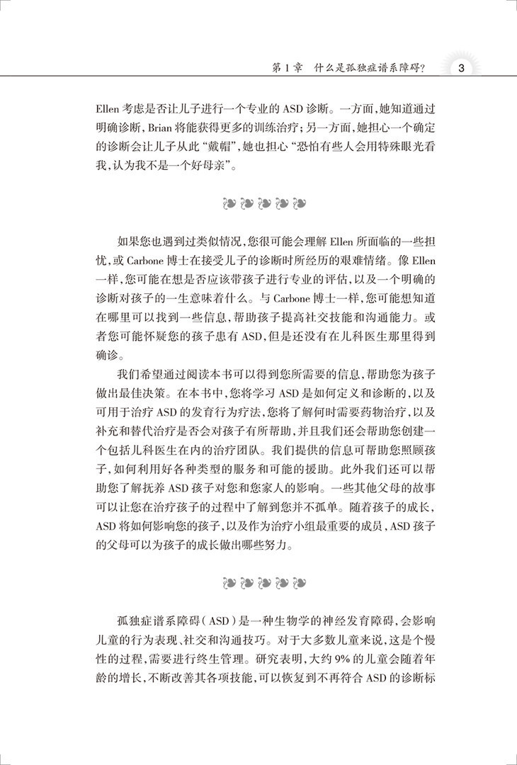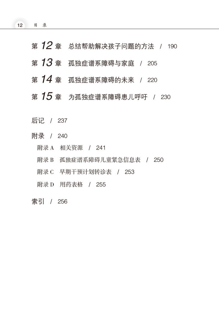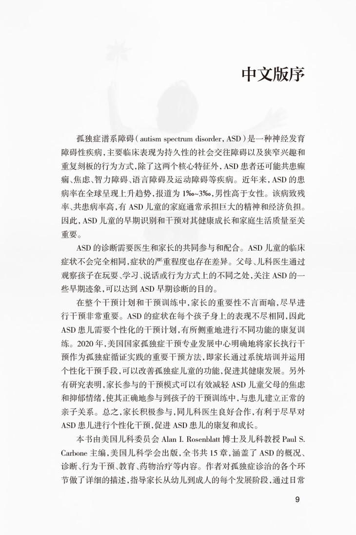 本书原著由美国儿科学会出版,全书共15章,系统地介绍了作为家长如何从孤独症谱系障碍(ASD)孩子婴儿期到成年期各个发育阶段进行支持,指导家长如何通过日常生活、游戏、语言鼓励等和与专业人士合作来帮助患有ASD的孩子。引导家长客观正确地认识ASD,消除对该疾病的过度恐惧,提醒家长如何早期发现自己的孩子是否患有ASD或具有ASD危险因素,以及如何与相关医护人员合作以发挥ASD孩子最*的优势潜能,有助于家长充分了解ASD相关知识。同时,对于医疗保健人员如何帮助ASD孩子,本书也以简洁的语言提供了一定的指导,能够帮助医护人员在临床工作中提高对ASD的重视。