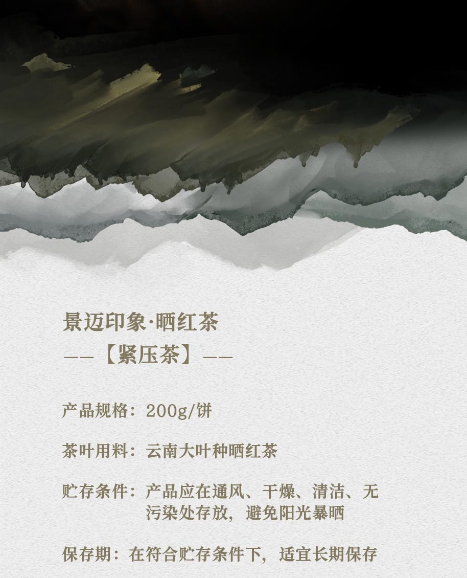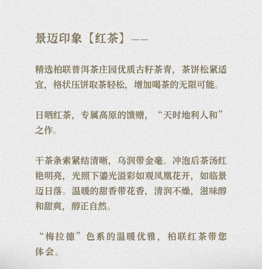 柏联普洱 茶叶 2023景迈印象红茶 古籽茶青 日晒红茶 饼茶紧压茶200g
