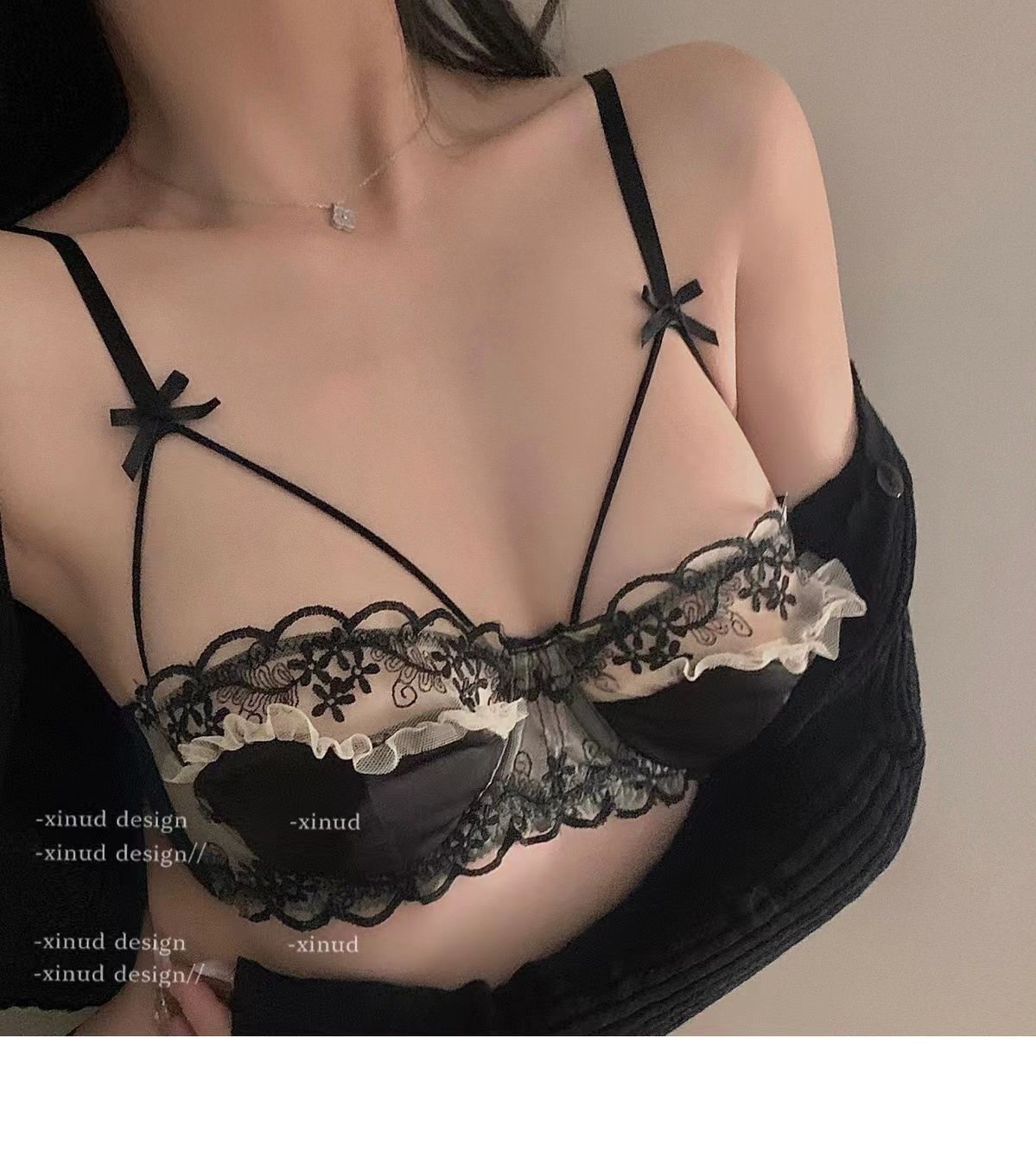 【性感与舒适并存❗️纯欲蕾丝内衣裤套装】夏季性感“小心机” 纯欲蕾丝无痕内衣女士,小半杯聚拢防下垂性感文胸L