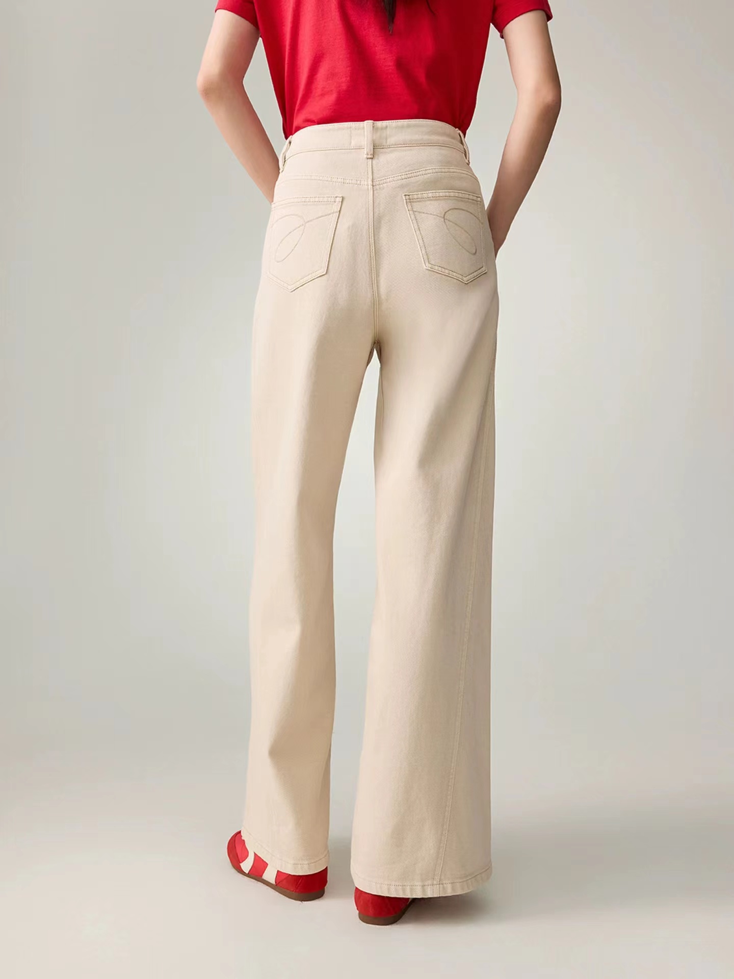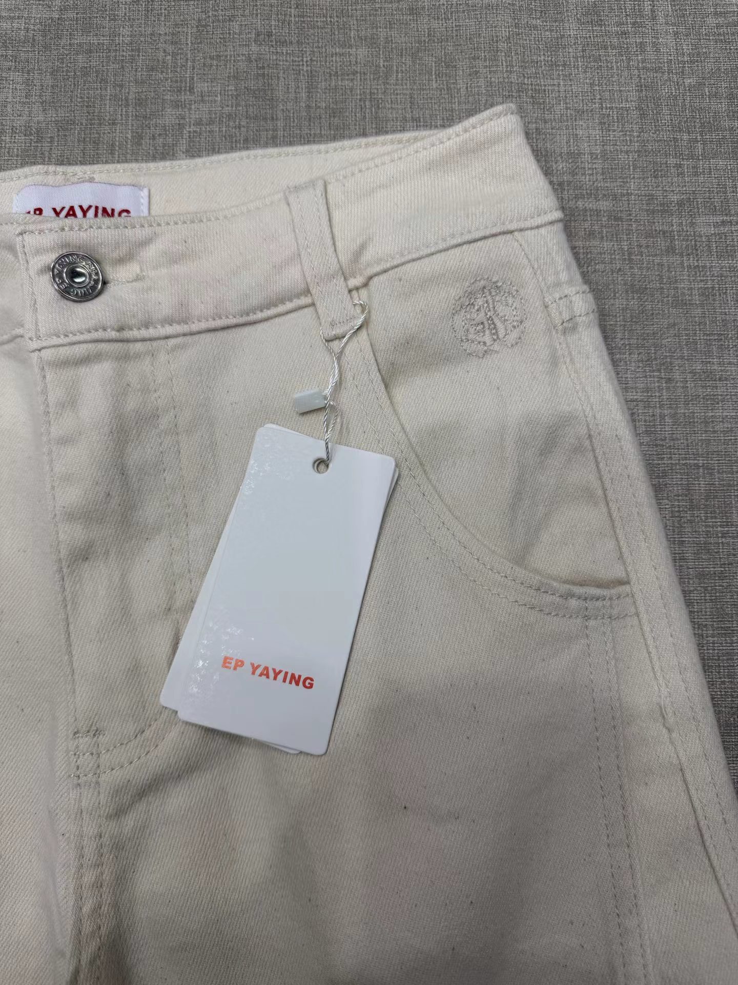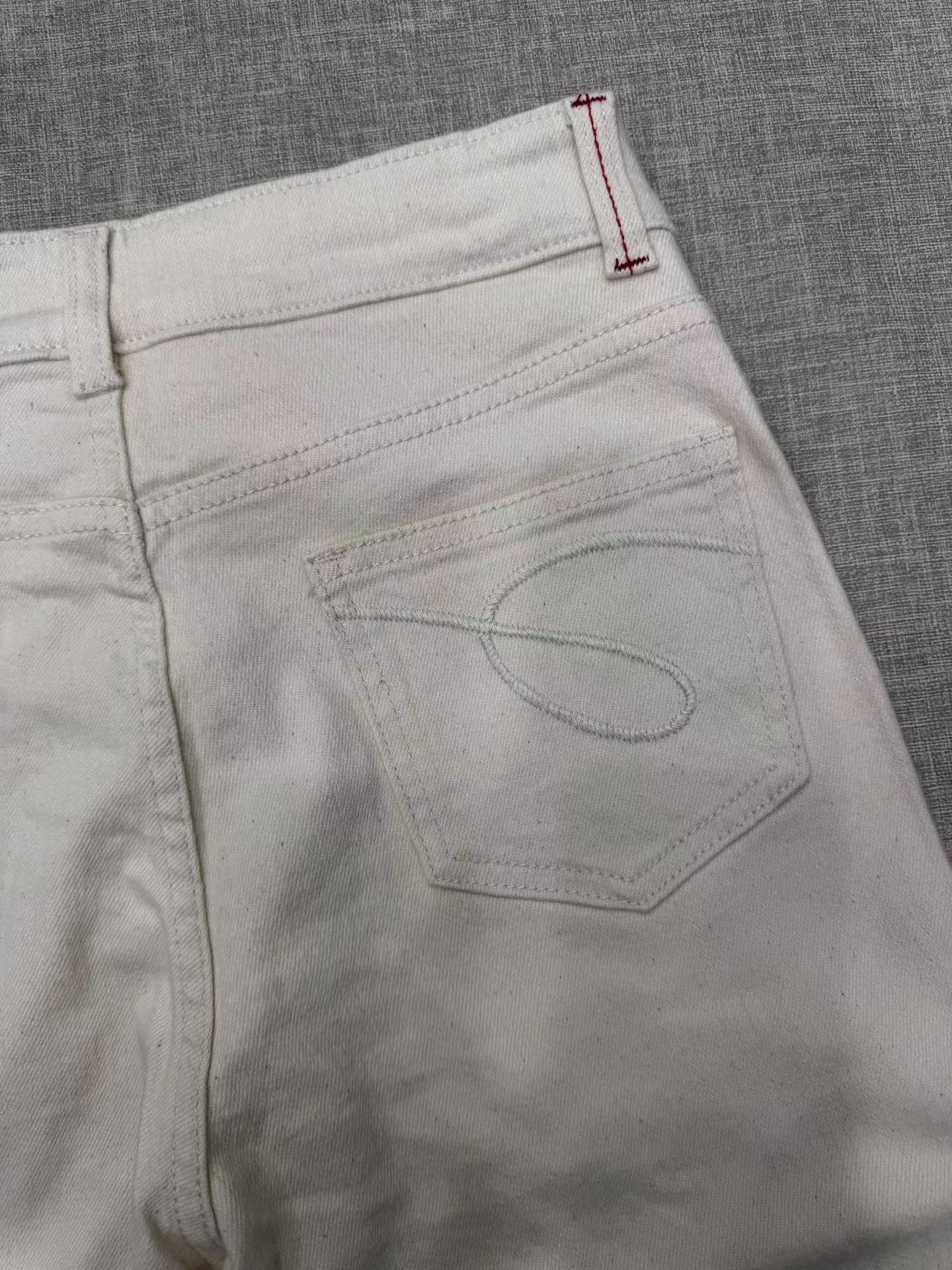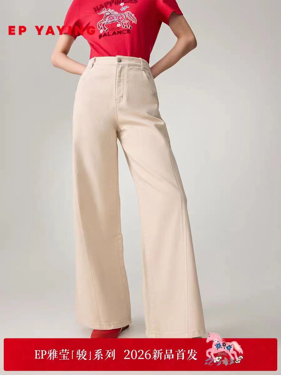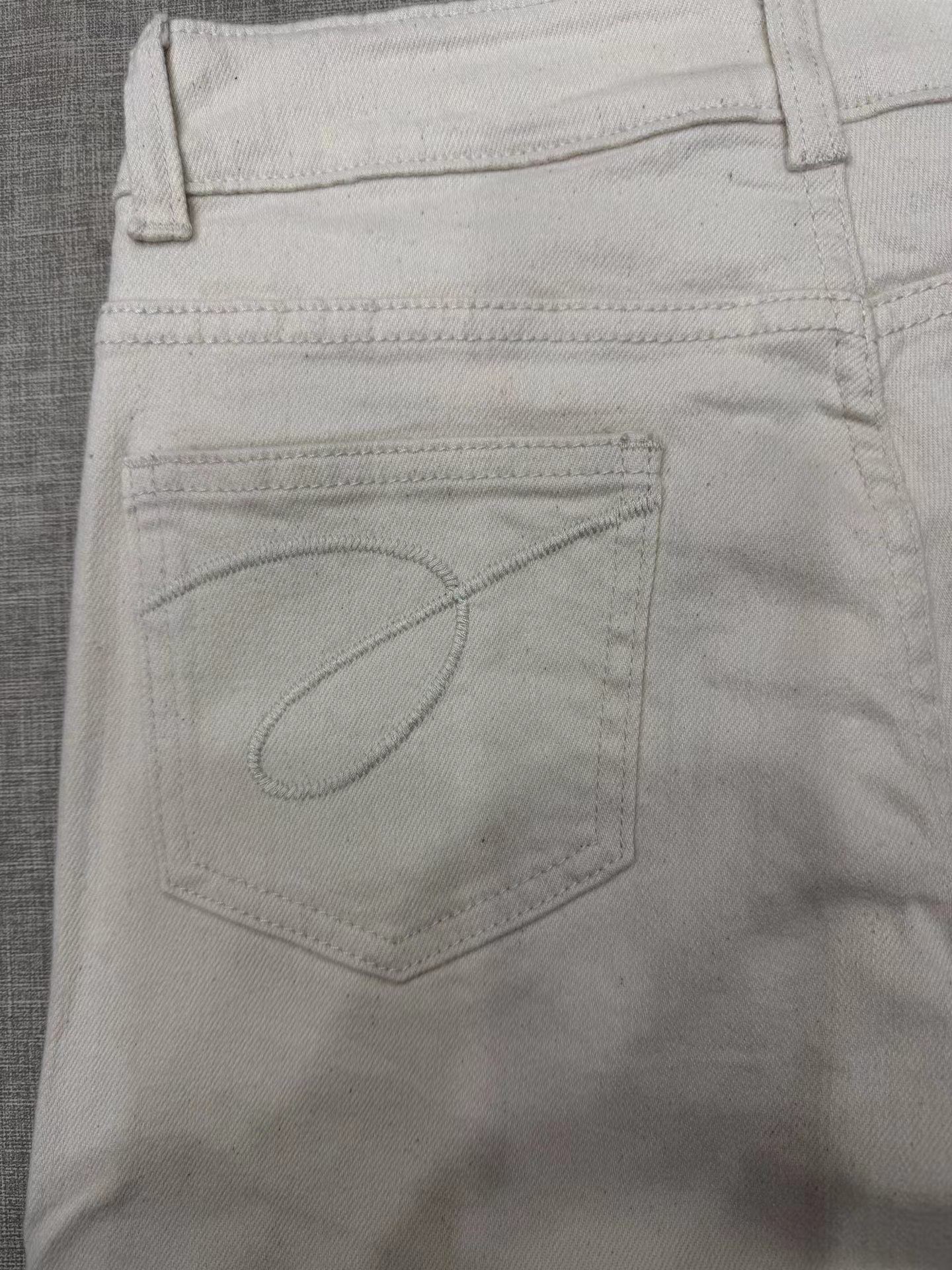 2026新款浅色米色 休闲直筒裤高腰棉牛仔裤 口袋绣花设计
