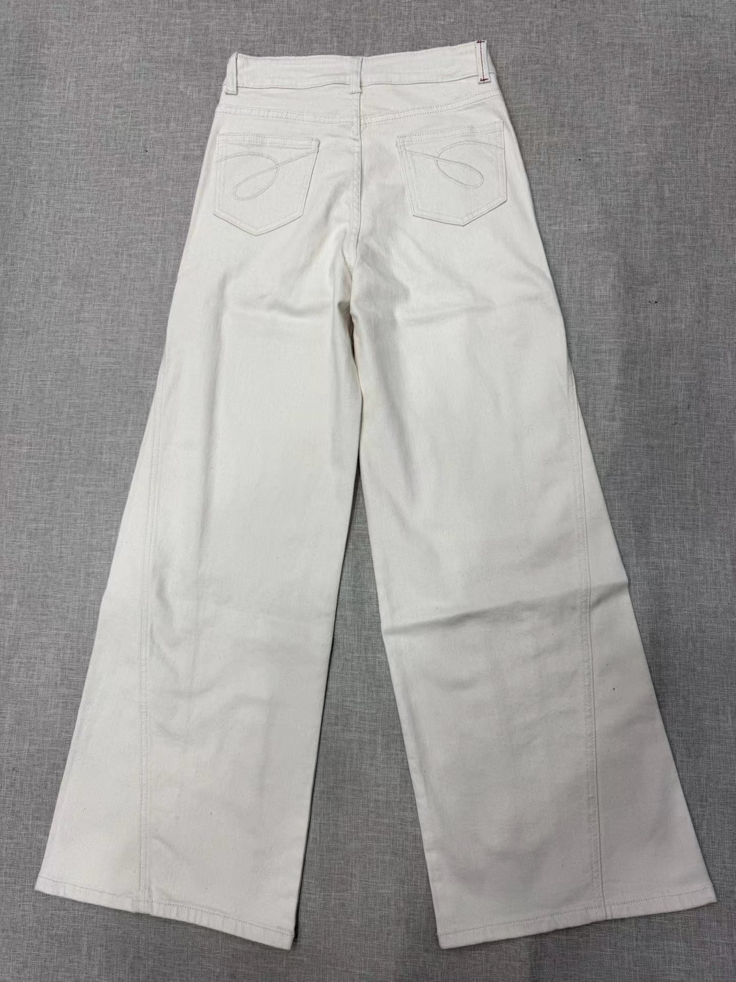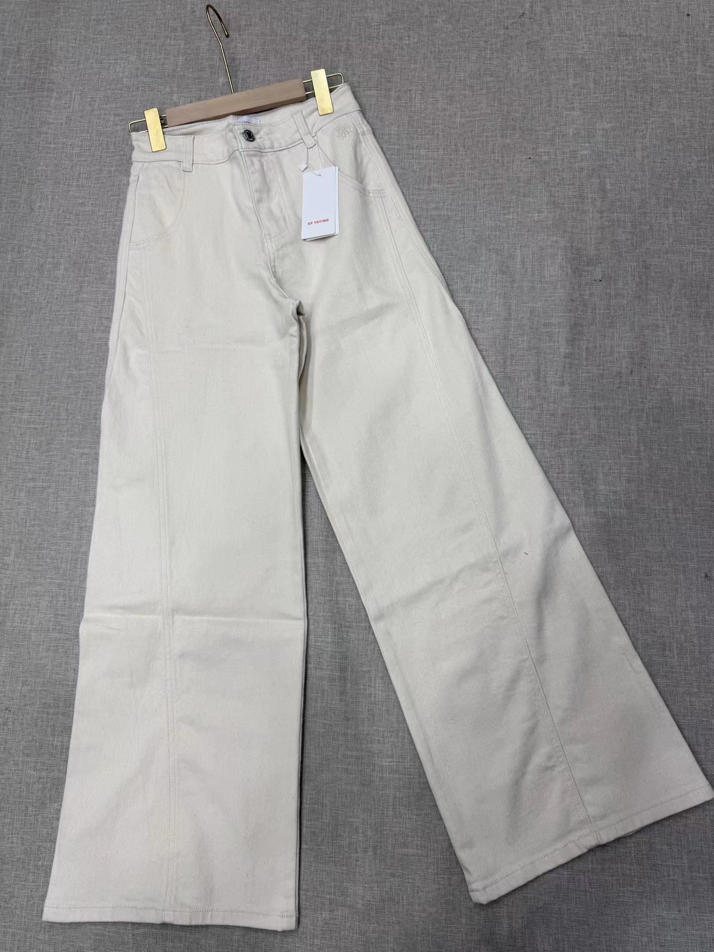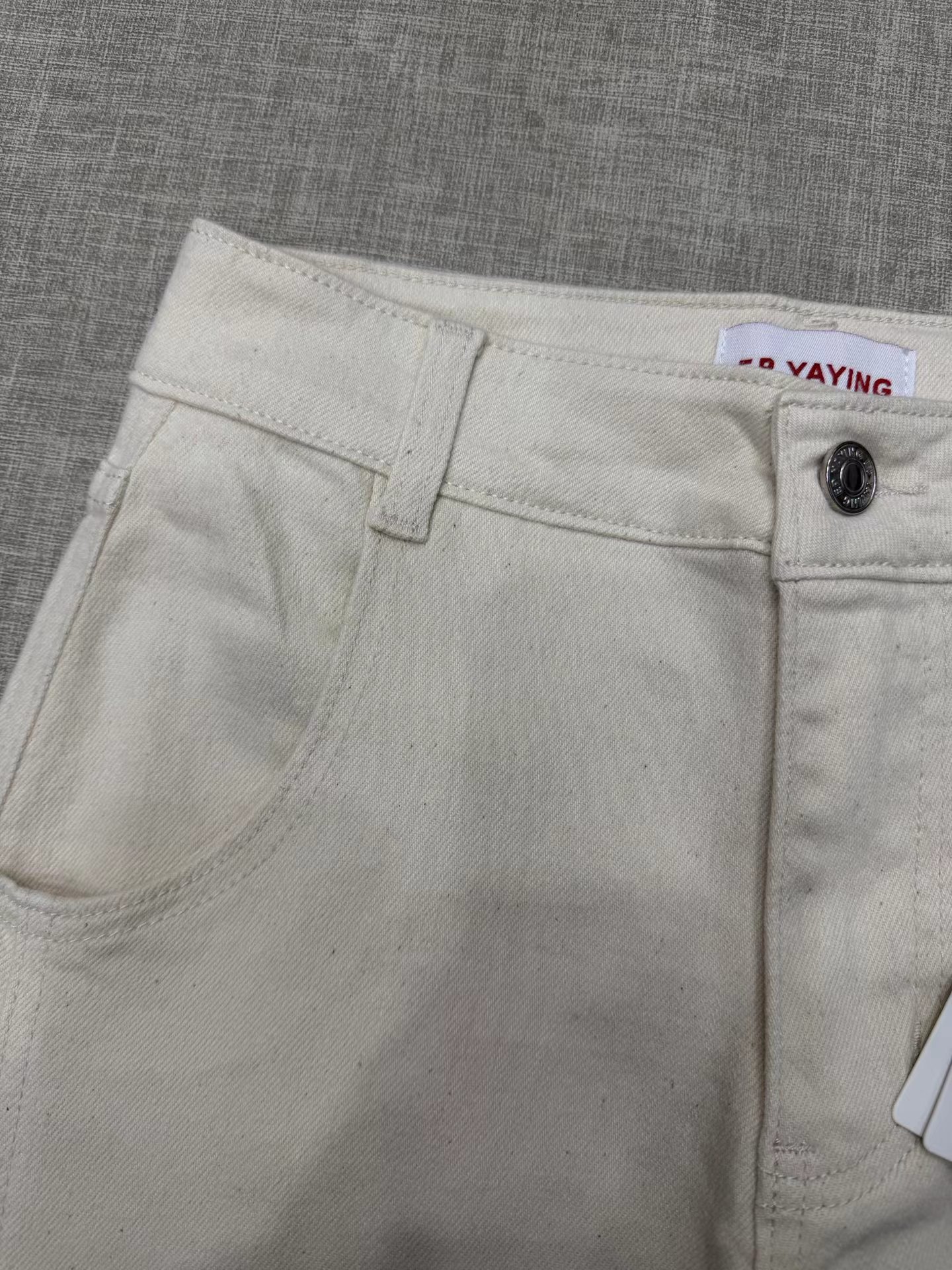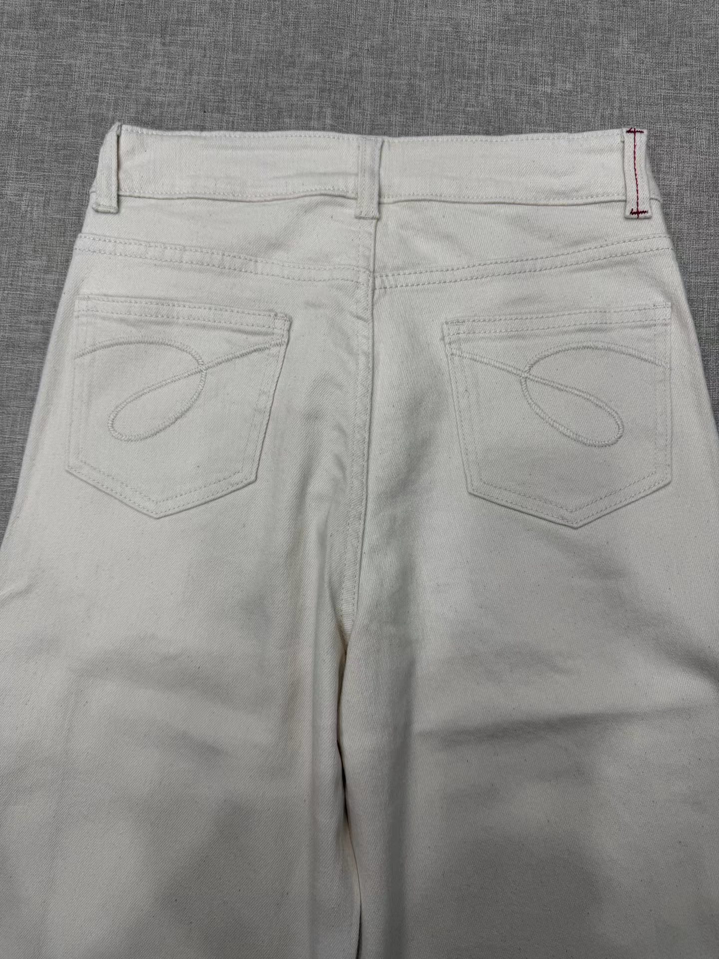 2026新款浅色米色 休闲直筒裤高腰棉牛仔裤 口袋绣花设计