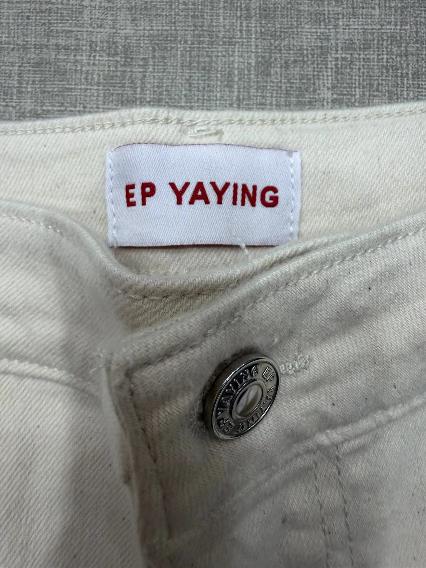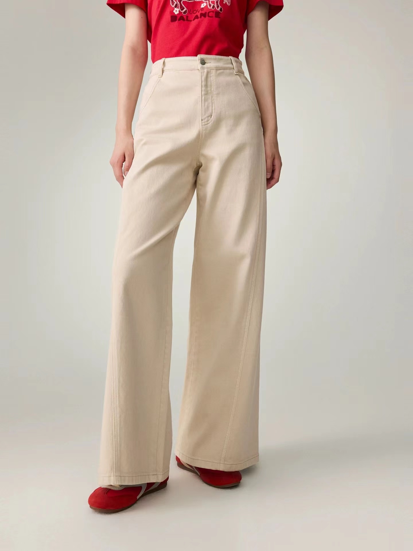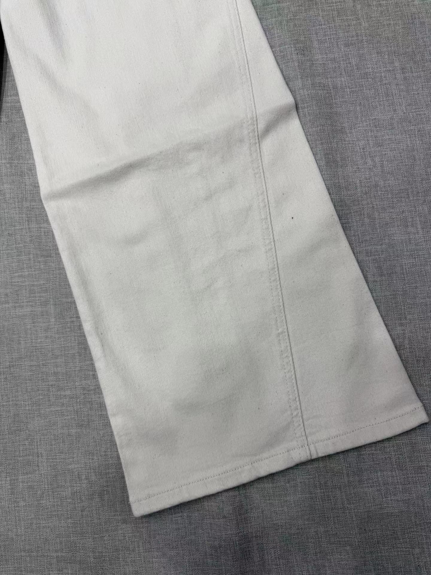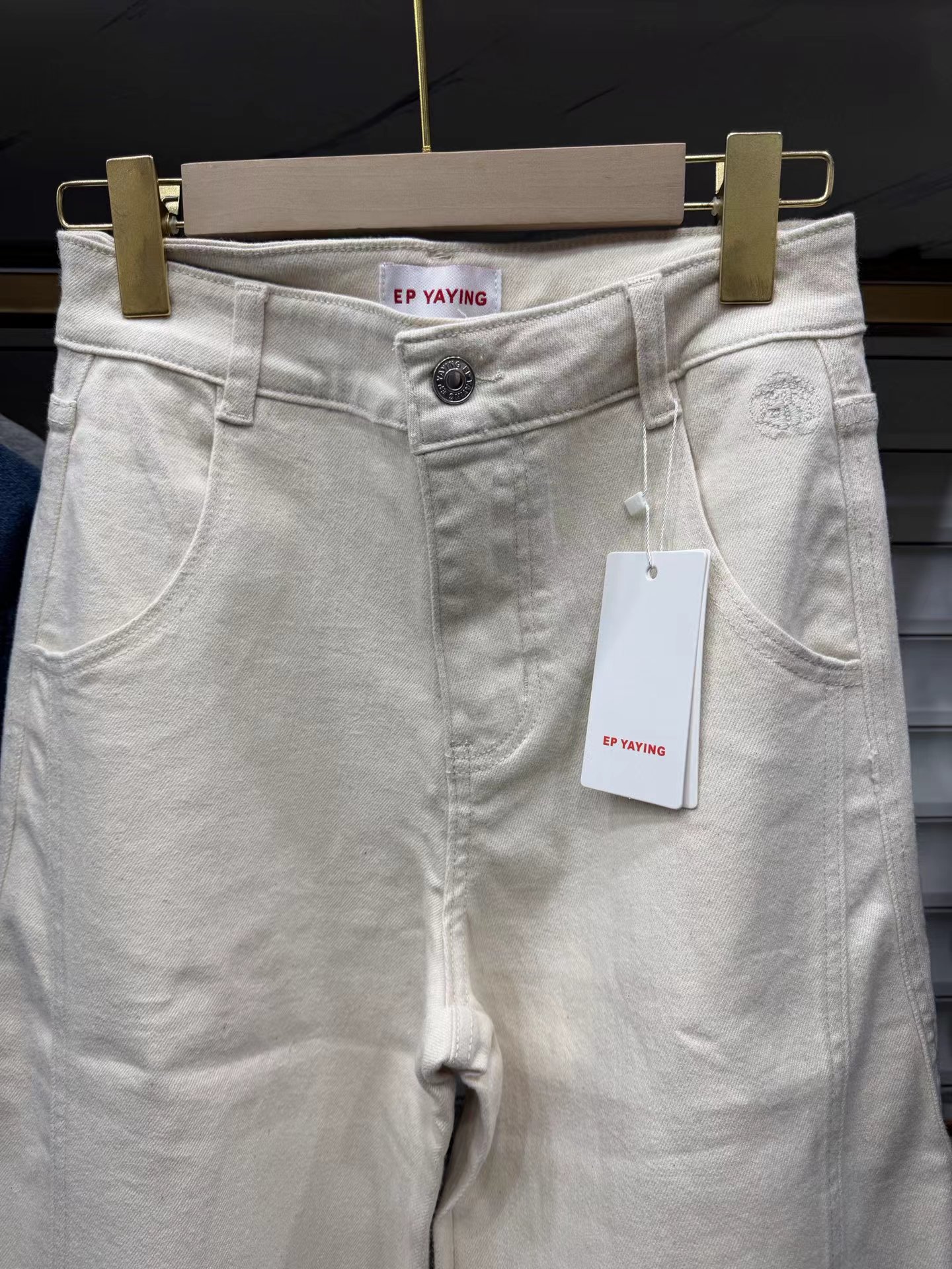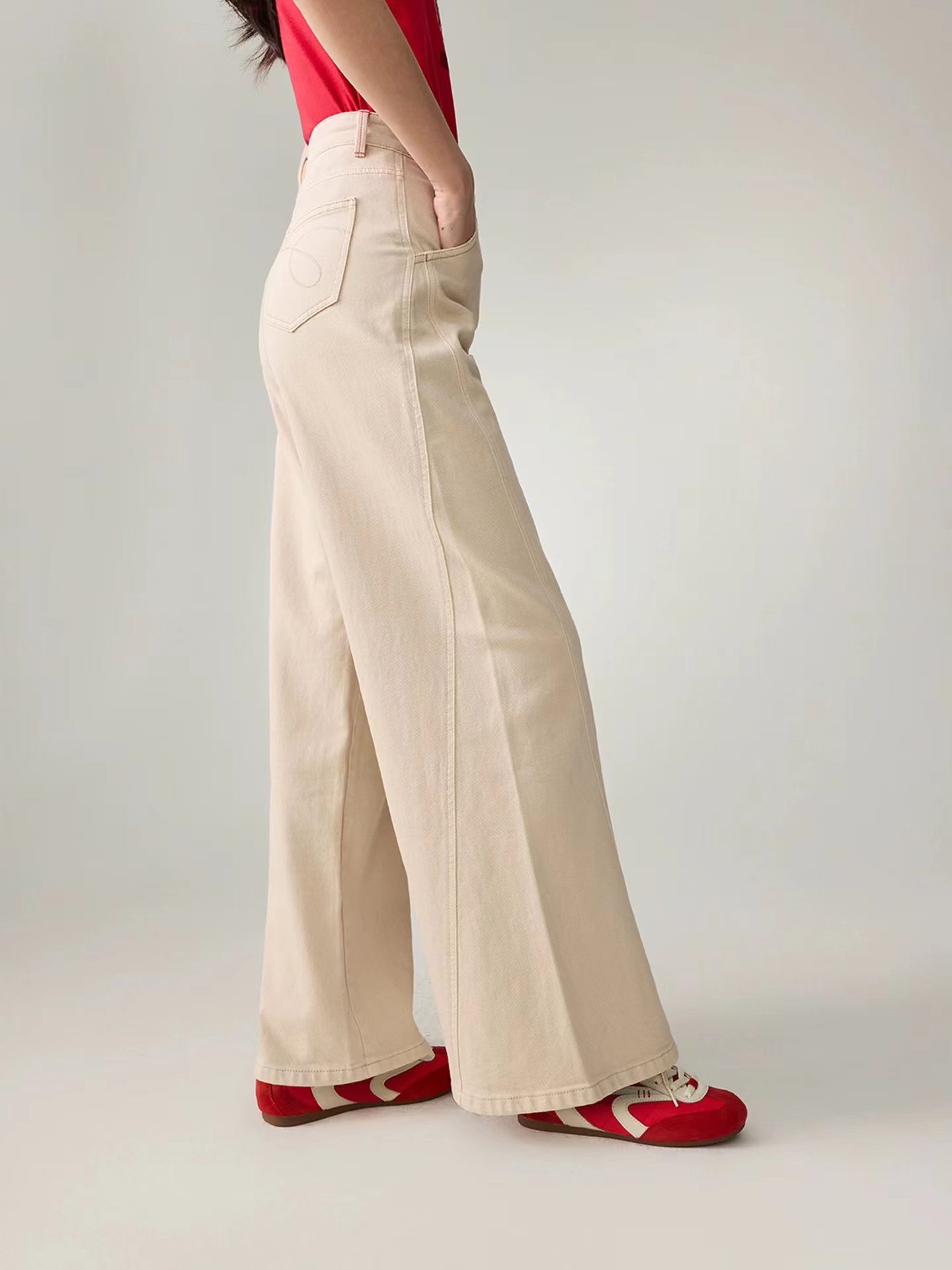 2026新款浅色米色 休闲直筒裤高腰棉牛仔裤 口袋绣花设计
