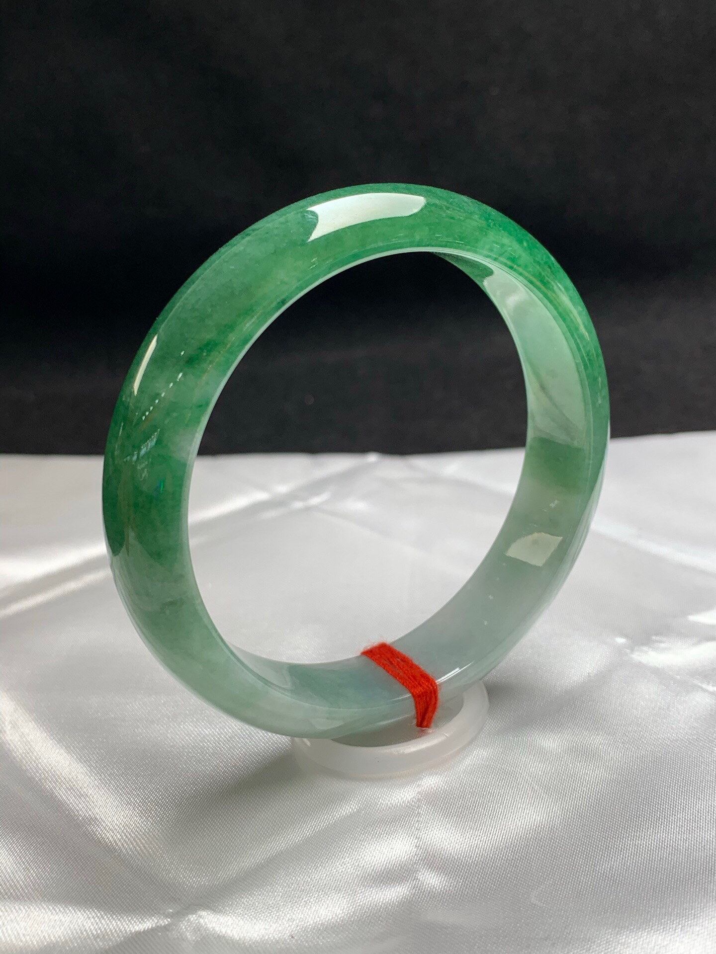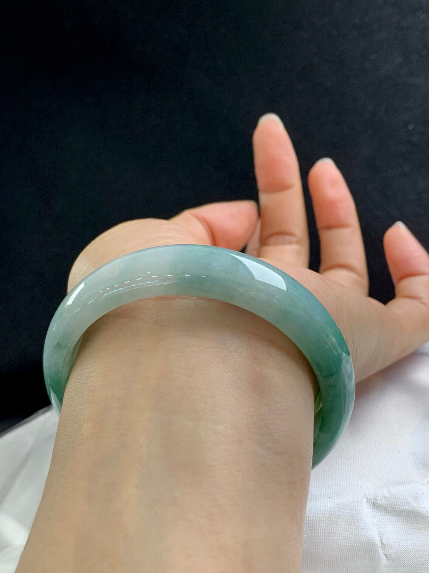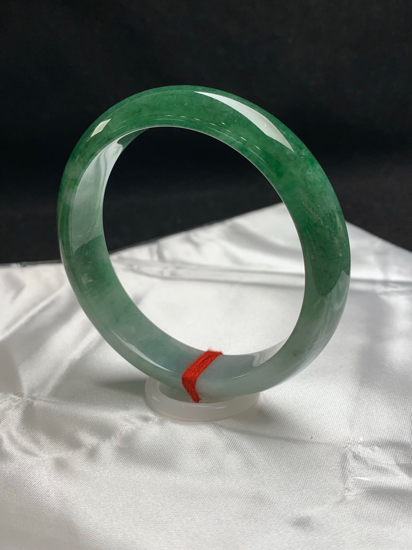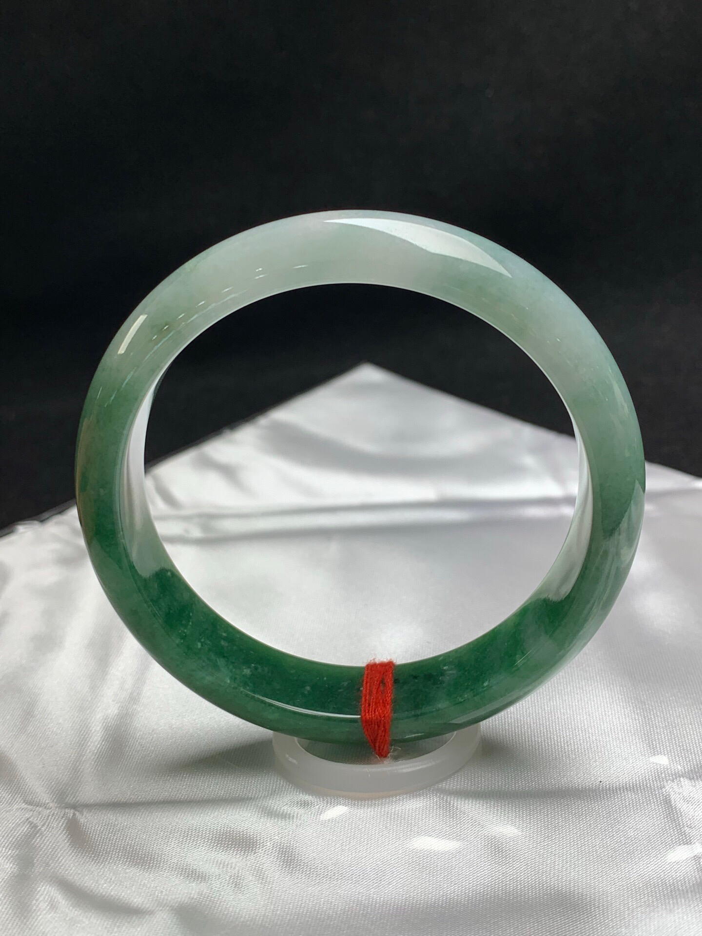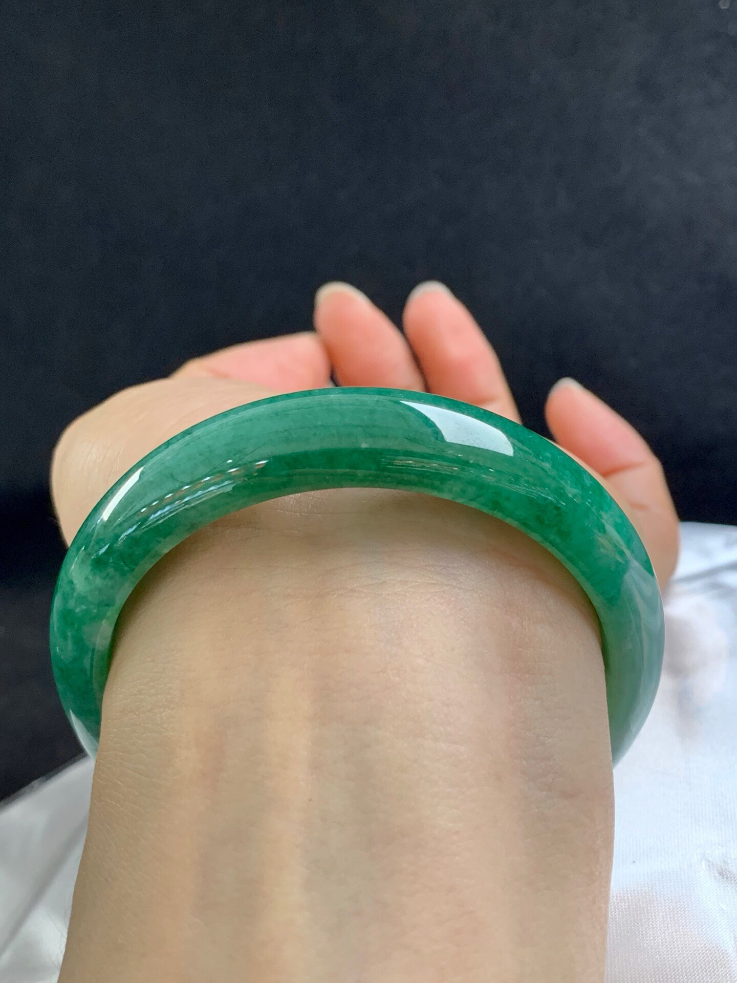 620631,57.7圈口细糯飘油绿正圈平安镯,大半截绿底色,半山半水,细腻完美,尺寸:57.7-13.8-7.6,超值价💰12300 #优石客珠宝#香玉荟萃