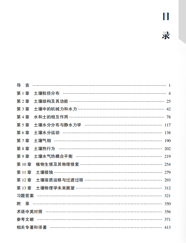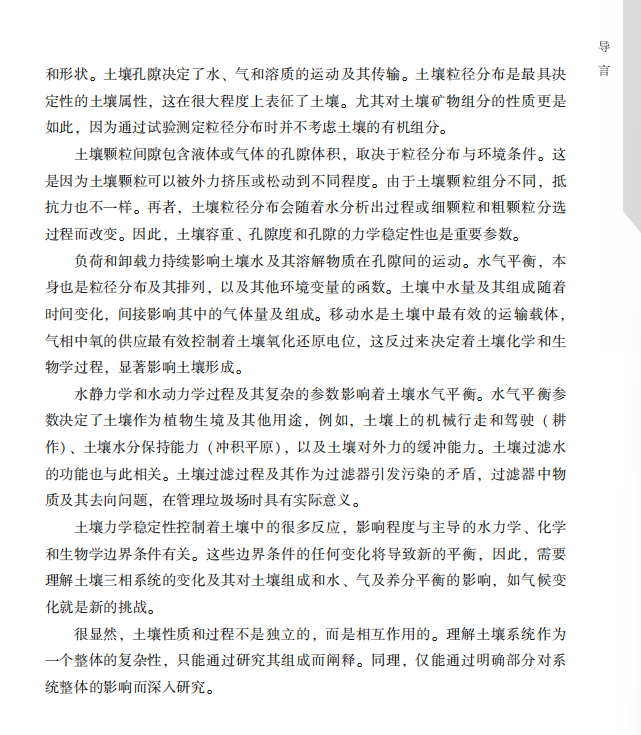 《土壤物理学精要》为解决我国耕地保育、边际土地科学改良与生态环境建设提供了理论基础和技术方法,可作为资源与环境、农田水利、农学、土木工程与生态环境等专业的参考教材,也是农业、林业、水利和生态环境保护等科研人员的工具书。当前,全球环境变化和人类活动对土壤的影响日益增加,该书对于保护土壤功能,防止土壤进一步退化,以及持续利用土壤资源至关重要。