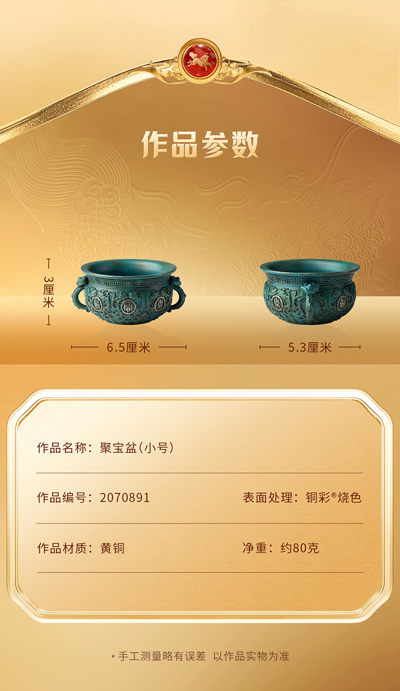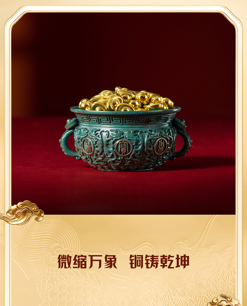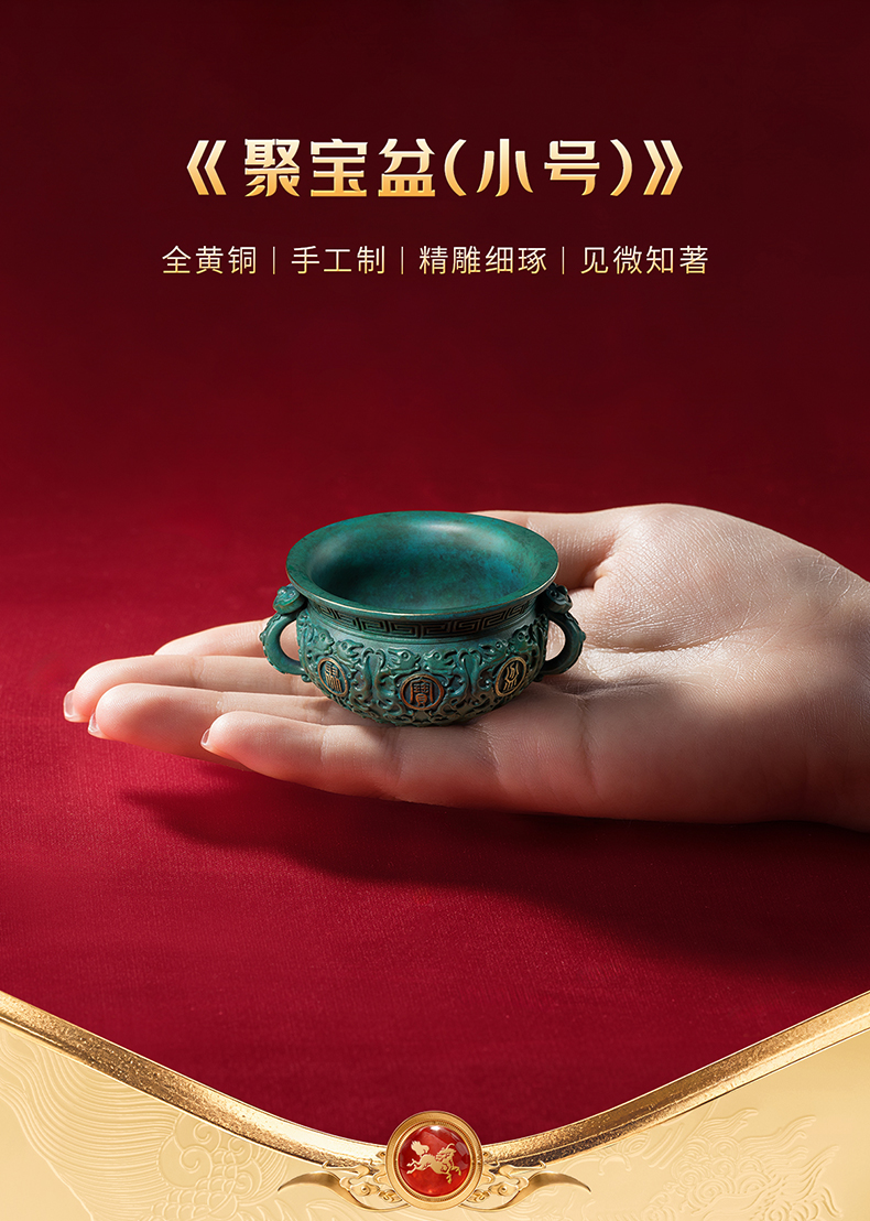 铜师傅 见微系列《聚宝盆(小号)》工位招财进宝铜摆件 家居工艺品