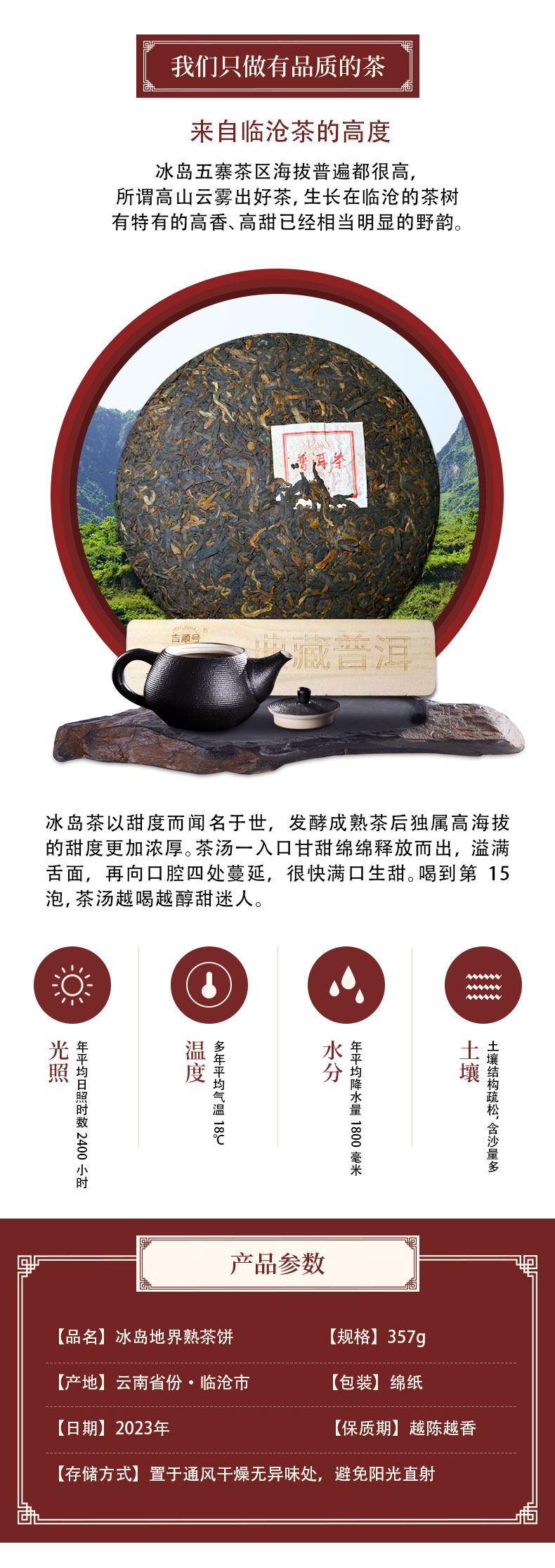 吉顺号普洱茶2023年冰岛熟茶饼357克熟茶饼