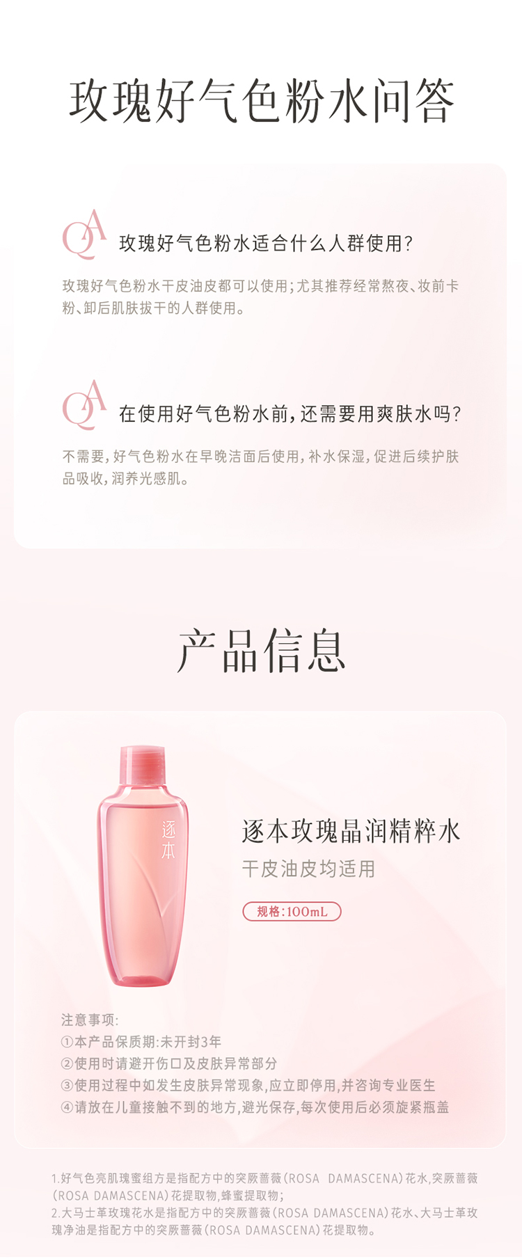 玫瑰晶润精粹水好气色粉水补水保好气色 100ml