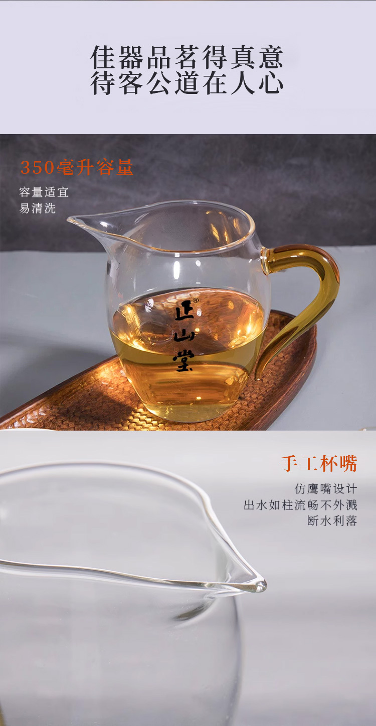 正山堂 耐热玻璃玲珑公道杯350ml 茶具